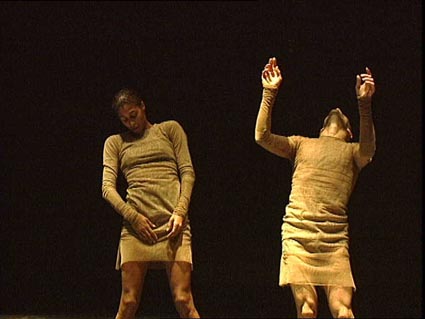 An experimental dance piece revealing the complex dynamics between two dancers and another woman. -