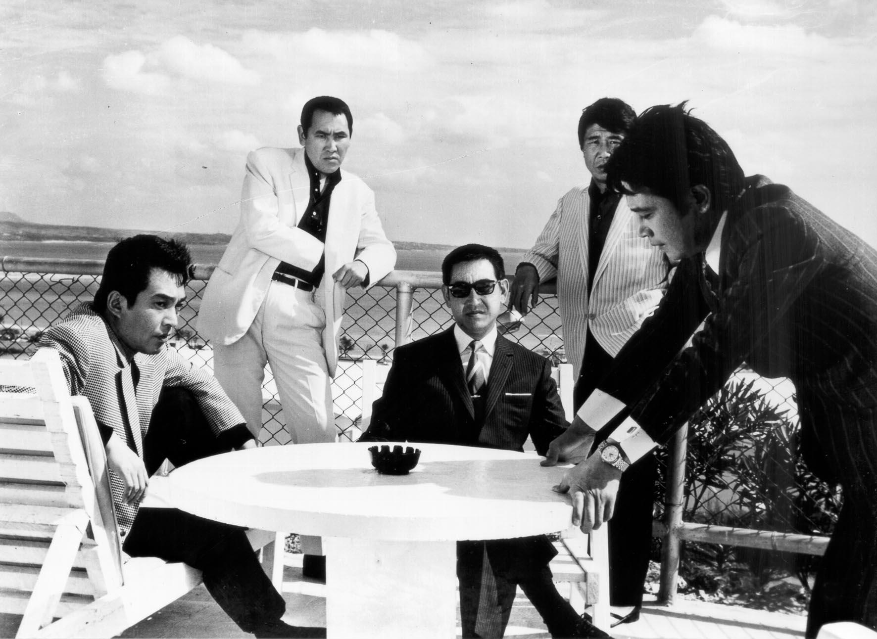 A film in the modern Yakuza genre that can be regarded as a sequel to Japan Organized Crime Boss, partly thanks to several names that reappear in front of and behind the camera. The location, the island of Okinawa, was only to return a year later to complete Japanese sovereignty after a lengthy American occupation after World War Two. The choice of location was also unusual for Toei’s Yakuza films. The reason was that in this film Fukasaku was looking for a background for his characters that had disappeared elsewhere in Japan, namely the mood of chaotic vitality that characterised the postwar years and that played such a major role in his earlier films. When the protagonist returns to Yokohama after ten years in jail, the city has changed beyond recognition into a neat model of bourgeois values, where the local Yakuza gangs are tied down. He decides to cross with his gang to Okinawa to find something of the bustling chaos that once ruled Yokohama too. On Okinawa they clash with three local gangs, but manage to gain the upper hand with the necessary violence. Then a large Yakuza gang from Tokyo gets involved in the struggle and a gang war breaks out. Fukasaku portrays his protagonists very sympathetically, however without taking sides with these crooks, who rest after their bloody slaughters on the side of the swimming pool by their luxury summer houses. Fifteen years after the Japanese capitulation, Fukasaku was only able to shape his radical view of the period immediately after the war in this distorted way. It may be no coincidence that this film marked the end of his cooperation with Tsuruta Koji, who had grown up in the war.