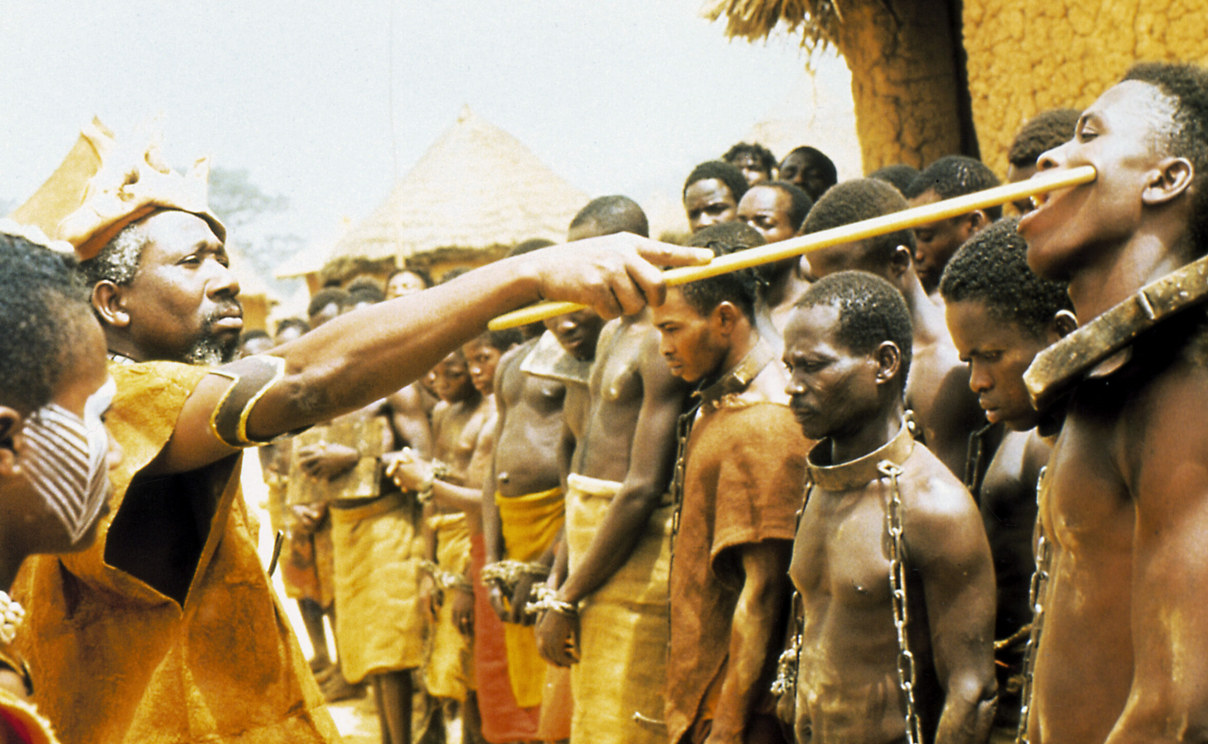 17th Century, West Africa. In a typical village on the so-called Slave Coast, the old chief N’Go insists that his son Ossei marry the daughter of a rich family. Unable to be with the girl he truly loves, the rebellious Ossei decides to leave the village. That night, Ossei’s village is burned and pillaged. Many are killed, while the others are taken prisoner. The bloody massacre is not executed by European slave traders, but by the Amazon warriors of the neighboring tyrant Adanggaman. When Ossei returns to his destroyed village, he finds out that both his father and girlfriend have been killed. He rushes to search for his missing mother Mo Akassi. Ossei catches up with the captured villagers led by the cruel Amazons on the difficult voyage toward Adanggaman’s kingdom. Ossei tries in vain to rescue his mother and is wounded. He finds himself among the many men, women and children in chains, humiliated and beaten like pathetic beasts. Adanggaman is filled with joy at the results of his Amazons’ recent manhunt, the inhuman source of his prestige, fortune and power. It is evident that his own kingdom has not escaped the hands of European slave traders by accident.Adanggaman was as a memorial to four centuries of slave trade. Forgive, but don’t forget, is M’Bala’s message.