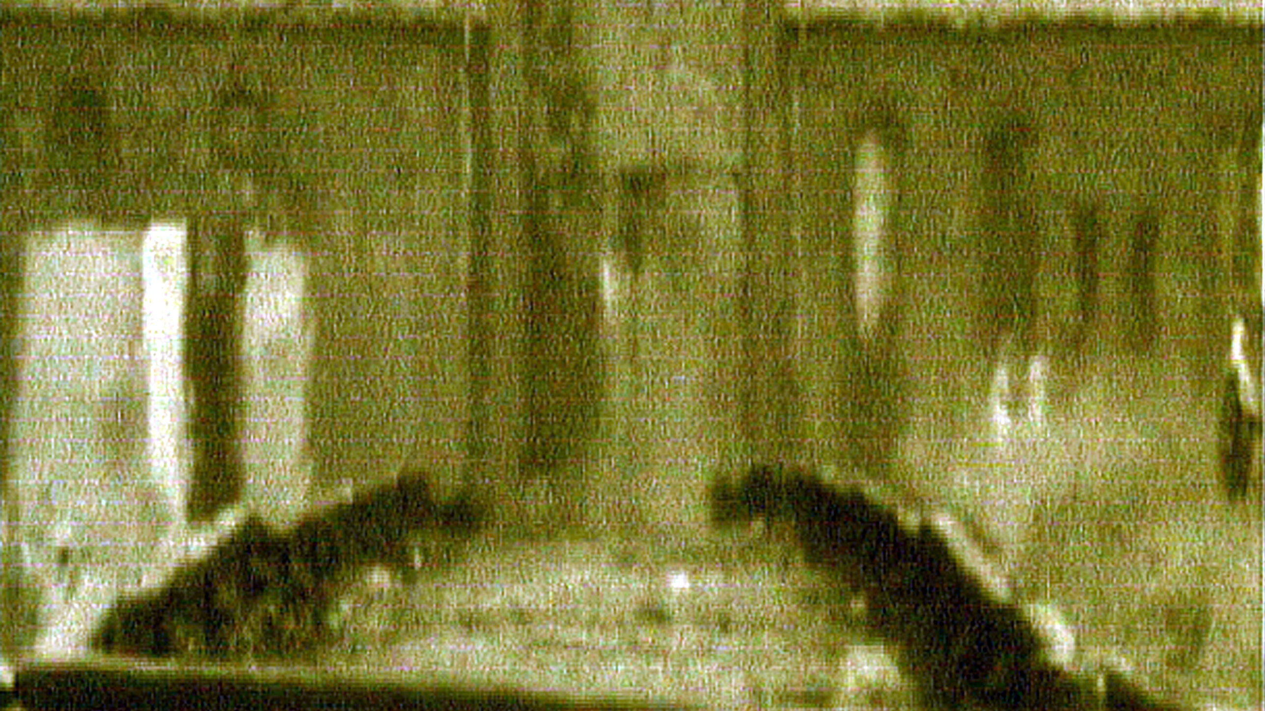 ‘The Gate of Death of Auschwitz’, shown in distorted forms, with the ghosts of death silhouetted in the look-out posts.