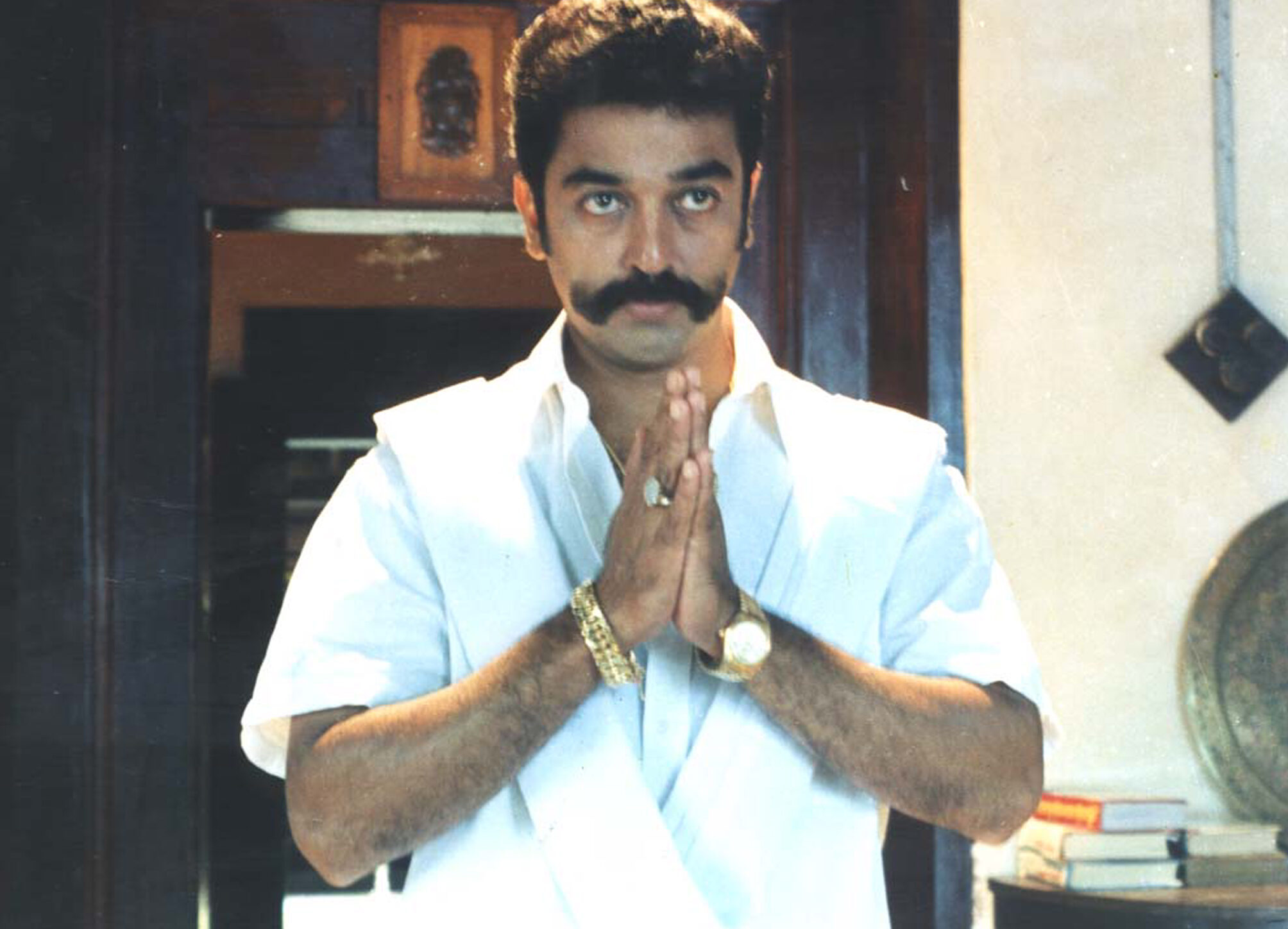 Shakthi, a son of the village chief Periyasam Thevar, returns with his modern girlfriend from London where he studied. He scandalises the orthodox home community with his actions. His father is disgraced by his son’s intention to marry a non-Tamil girl and to start a fast-food chain in the city. Although the son believes that the village is 200 years behind the times, he complies with his father’s request and plans to stay for a while. However, after his father’s death, which is mainly caused by the complete breakdown of the family, Shakthi decides to settle down in the village and marries a local girl. As in most mainstream Indian films, there are many sidelines to the main narrative. Still, the film sophisticatedly illustrates the collision between traditional and modern social values.
