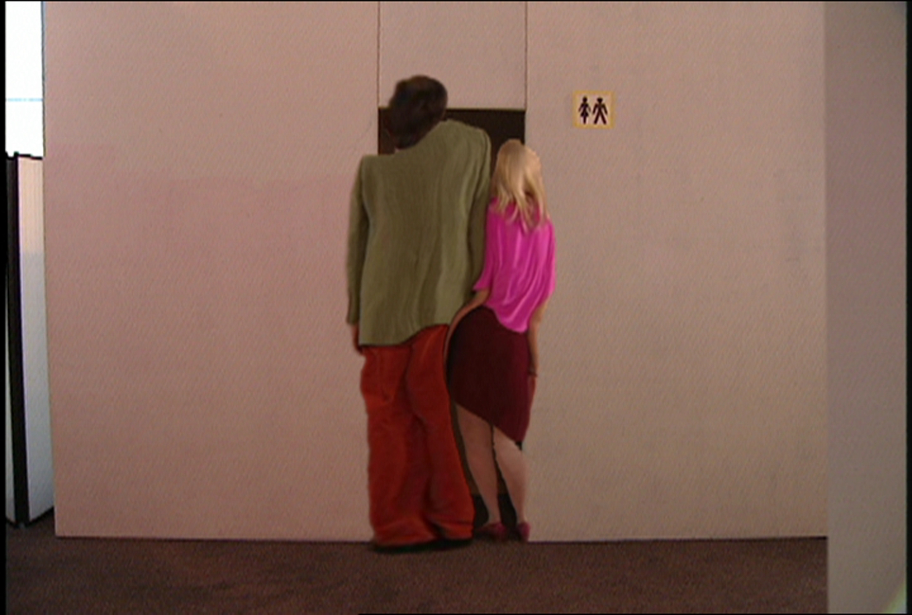 This straightforward video-installation reprises a fragment of the feature film *Corpus Callosum, that is presented for the first time at this festival. Throughout his work, Michael Snow has demonstrated the relativity of our perception with seemingly simple strategies of subversion. His recent work has implied digital manipulation to a large extend. Couple is an elegant example of how Snow allows people to step into another dimension.