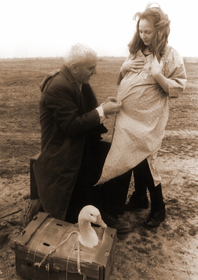 Someone who kills animals is a butcher, and someone who kills people is called a murderer. Dumitru (40) is both. When he is released from prison, he resorts to his old practices on the way home by train: a card game with gypsies gets out of hand, leading to a death. Initially he seems to get away with it. Back home, his younger wife is waiting for him. Then he finds out that his brother has made her pregnant. Driven by revenge, another murder follows, and that won’t be the last: Dumitru becomes a serial killer. His life is unbearable. But when he wants to die, he finds out he can’t: God has other plans for him.We have to hope that Everyday God Kisses Us on the Mouth does not serve as a parable for the moral situation of Romania. The power of the film is partly to be found in the pitch black portrayal of the convinced brute even if it looks as if other emotions are possible for the butcher towards the end. Due to the fact that Dragin (whose Long Journey by Train was seen in 1999 in the ‘After the Fall of the Wall’ programme) chose largely for black and white and a murky style with magic moments, he places his film in a long tradition of realistic fairy tales from Eastern Europe.