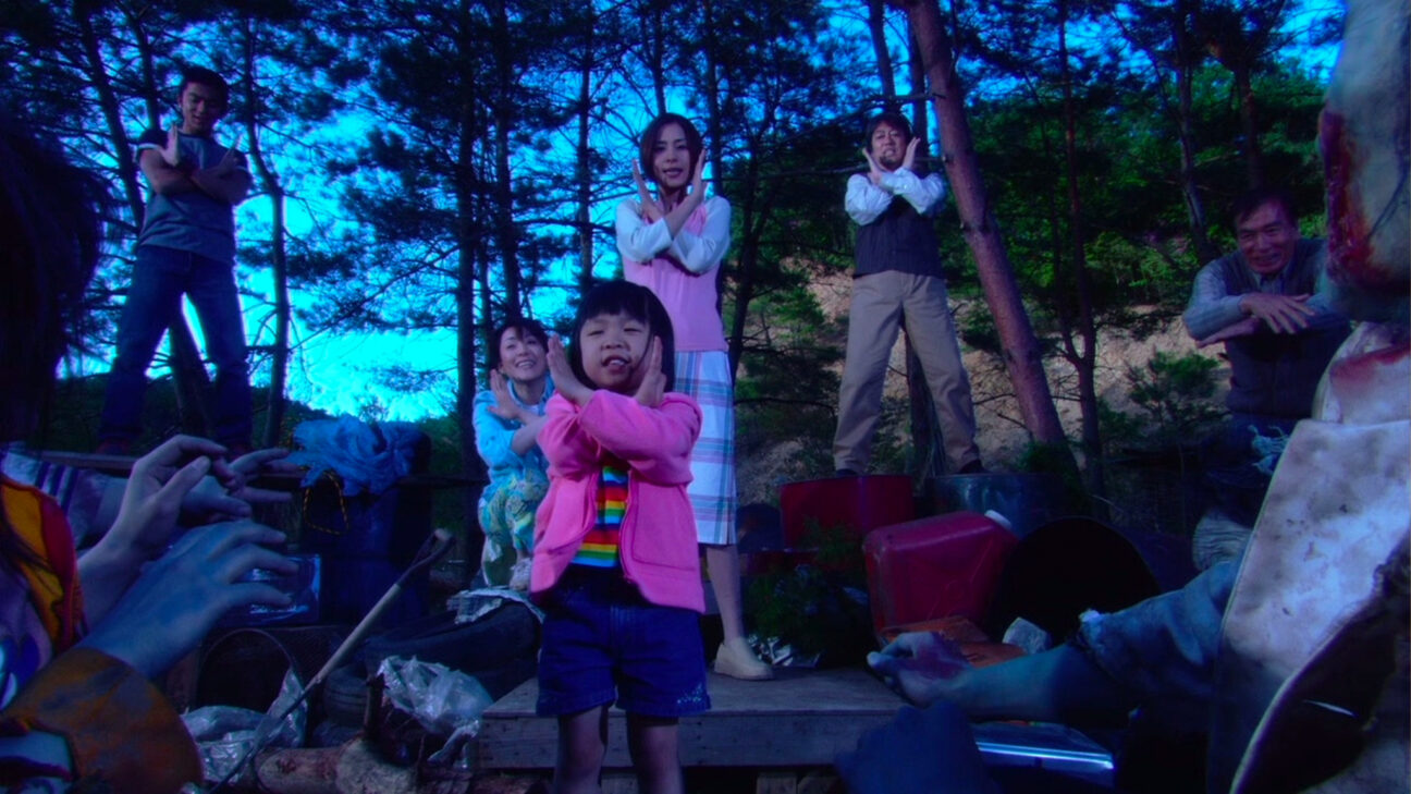 Just when you think you are used to anything Miike can throw at you and you go to see his latest film on your guard, prepared for nasty tricks with needles, hooks and all conceivable kinds of abominations, he presents you with The Happiness of the Katakuris. No Yakuza and hitmen this time, but a Japanese Von Trapp family, that sing and dance as they run a lodging house in the mountains. Great grandfather is the head of the family, then there are the caring grandpa and grandma, their taciturn son and their daughter, an unmarried mother of a darling girl. The lodging house does not attract many guests, but the family motto is ‘stick together and we’ll pull through’.