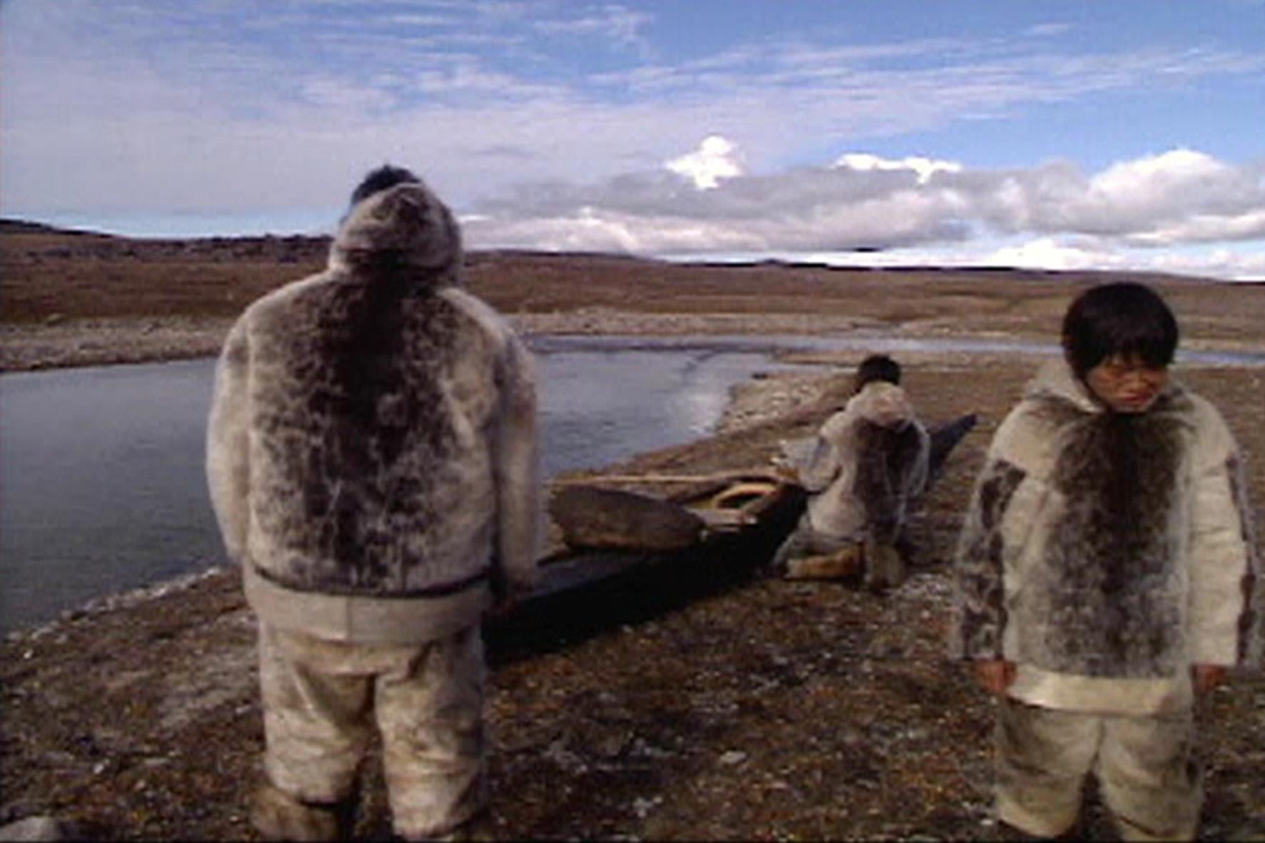 Igloolik, Fall-Winter 1946. Sitting around the stone house carving a harpoon, Qulitalik starts talking about the year gone past. Everyone joins in with stories and laughter. Tea is boiling over the seal lamps, children playing on the caribou skin beds. Grandmother tells the old stories, everybody has a new one. Home is warm and cozy. It is only when the young ones slip out the door to play outside that we hear the winter wind.