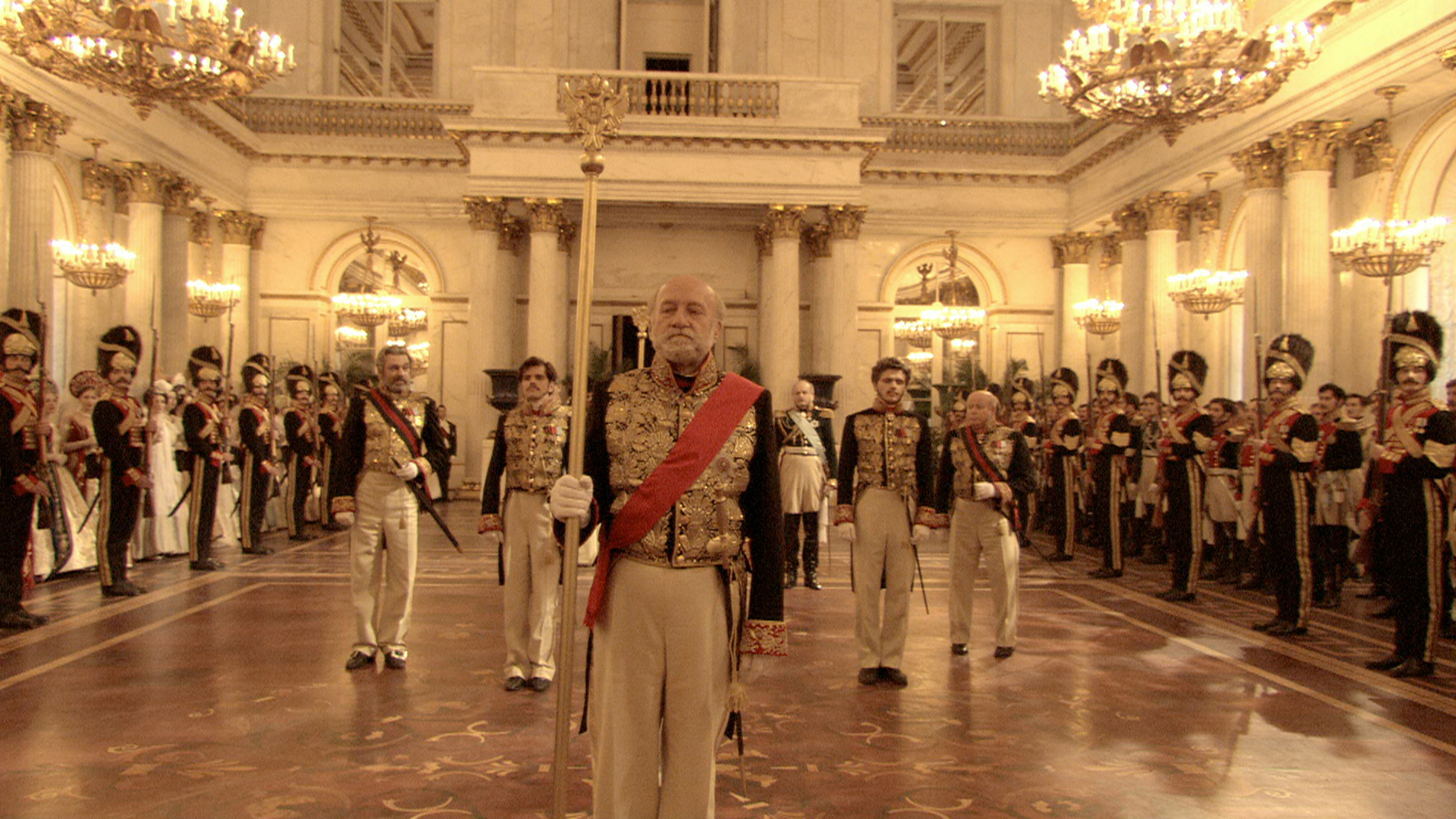 In Russian Ark, the master Sokurov makes a visually overwhelming and technically admirable journey through three centuries of Russian and global (art) history, filmed in one 96 minute take. It is a guided tour of one of the world’s most famous museums, the Hermitage in St Petersburg. Not a dry trip past all the paintings, sculptures and crafts, but a sparkling dream come true about the different inhabitants of and visitors to this former palace. A narrator (the voice of Sokurov himself) and a cynical French marquis lead us around events large and small, while they enjoy (and squabble about) the works of art. They meet historic figures such as Catherine the Great and Czar Nicholas II, who gave his last ball there in 1913. In all, hundreds of actors and extras played a role in Russian Ark, who all had to be dressed in the historic costumes of the different eras. The music was performed by three orchestras and conducted by Valeri Gergiev. Steadicam specialist Tilman Büttner (also responsible for the running scenes in Lola rennt) also makes a great contribution to the film. His digital HD video camera glides and dances around the characters and objects. The recording was made directly to hard disk, after which the colour and light were processed in Berlin, still without a single cut.
