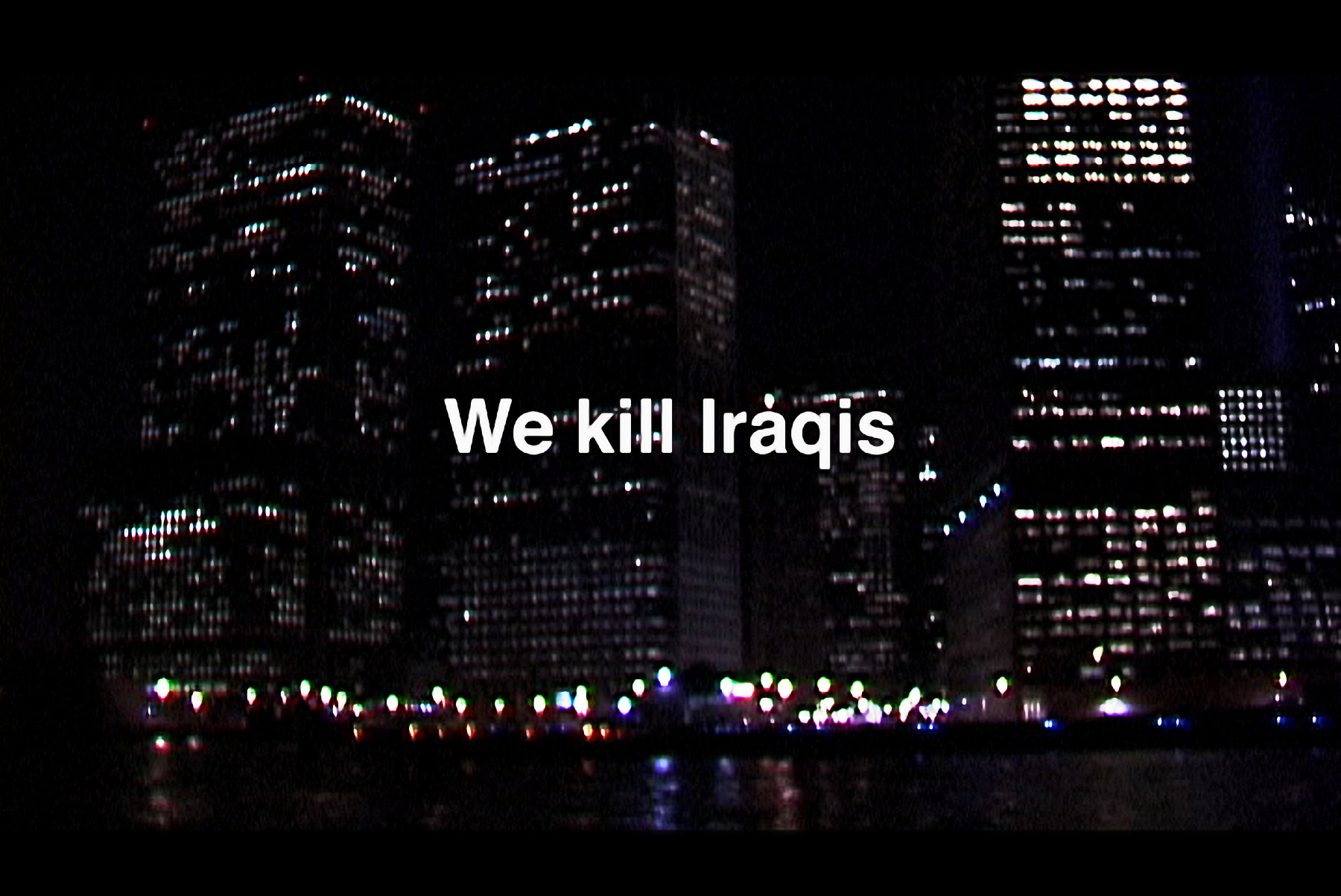 Shrink2b.demos consists of two video projections with one musical soundtrack. The video and sound elements of the installation will have a running time of approximately 11 minutes. The project takes a structuralist visual approach, and is an excerpt from a feature-length work-in-progress. The imagery consist of two projections of the Manhattan skyline as seen from a slowly moving boat. The moving images will be overlaid with short texts (Walter Benjamin, Alian Badiou). The writing references aspects of contemporary urban life (in this version, the myth of progress, and the return of “evil” to the modern political landscape…). The only sound in the work will be 2 songs from the cd ‘Shrink’ (1998) by the bavarian experimental pop groud The Notwist which mix tropes from rock, jazz, and electronica. In each song / section, the two images will be similar, the same location as seen before and after the destruction of the World Trade Center.