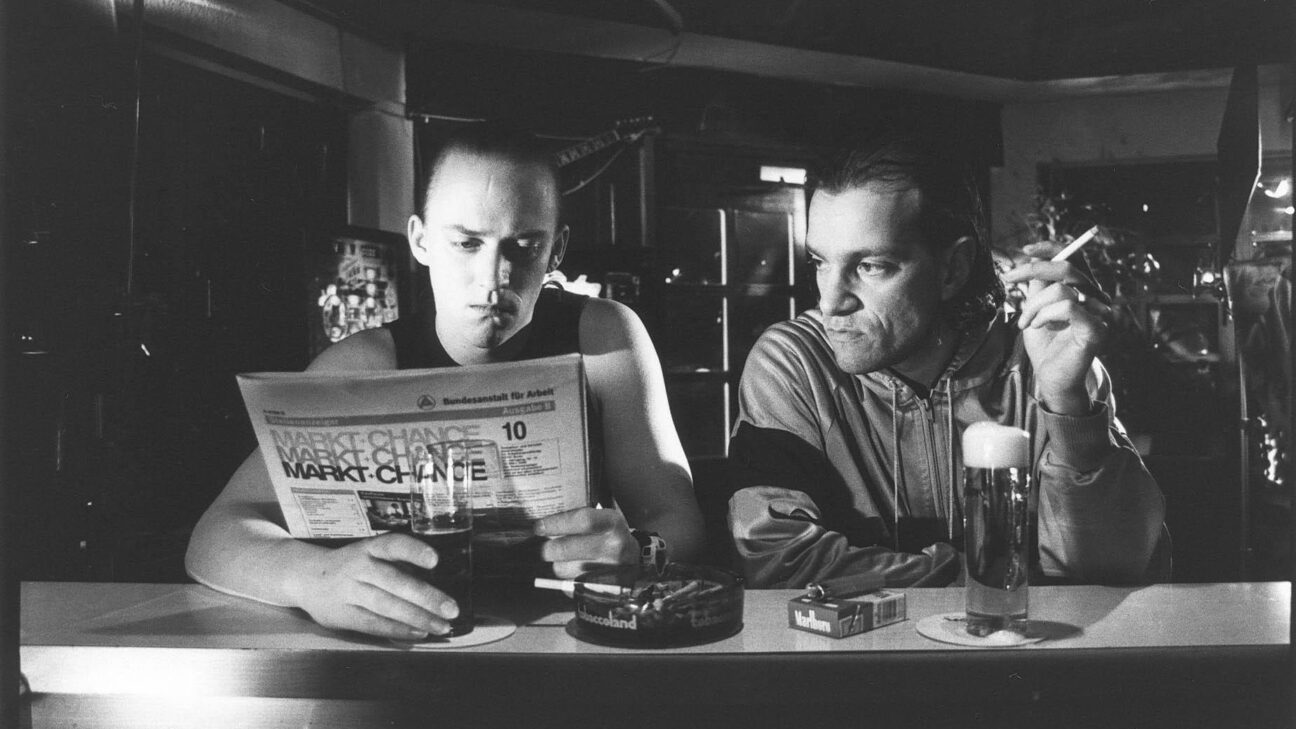 Two young film makers from Cologne recklessly line themselves up in the tradition of the great director-actors. Of all great names, we need only mention Buster Keaton. This was only possible in black & white and any dialogue would be disruptive. As would any smile. Those are reserved for the audience. The film makers play Mike and Alfred, who keep themselves busy in a bar. Until suddenly a strange woman appears and orders a vodka.