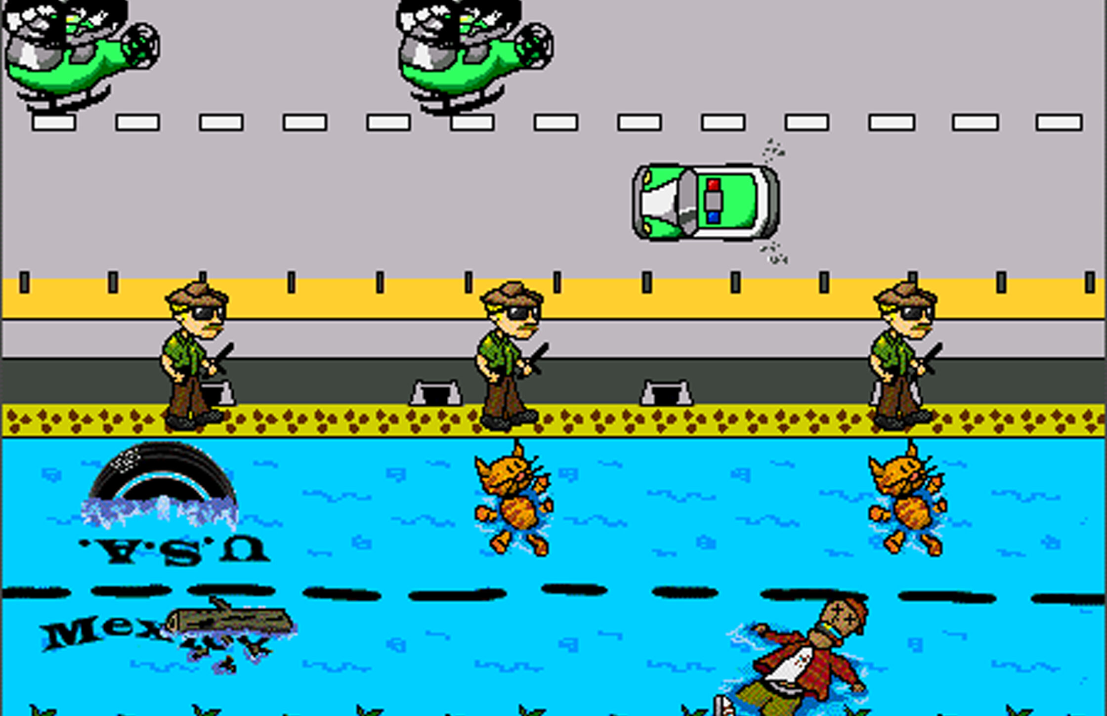 Crosser confronts the player with the challenge of crossing the Rio Grande between Mexico and the United States. The idea is to get hold of a green card once you’ve crossed. On arrival, you are given the option of returning to Mexico to visit your family, but the return to the US is just as difficult as the first journey. La Migra gives the player control over an advanced mobile command unit.