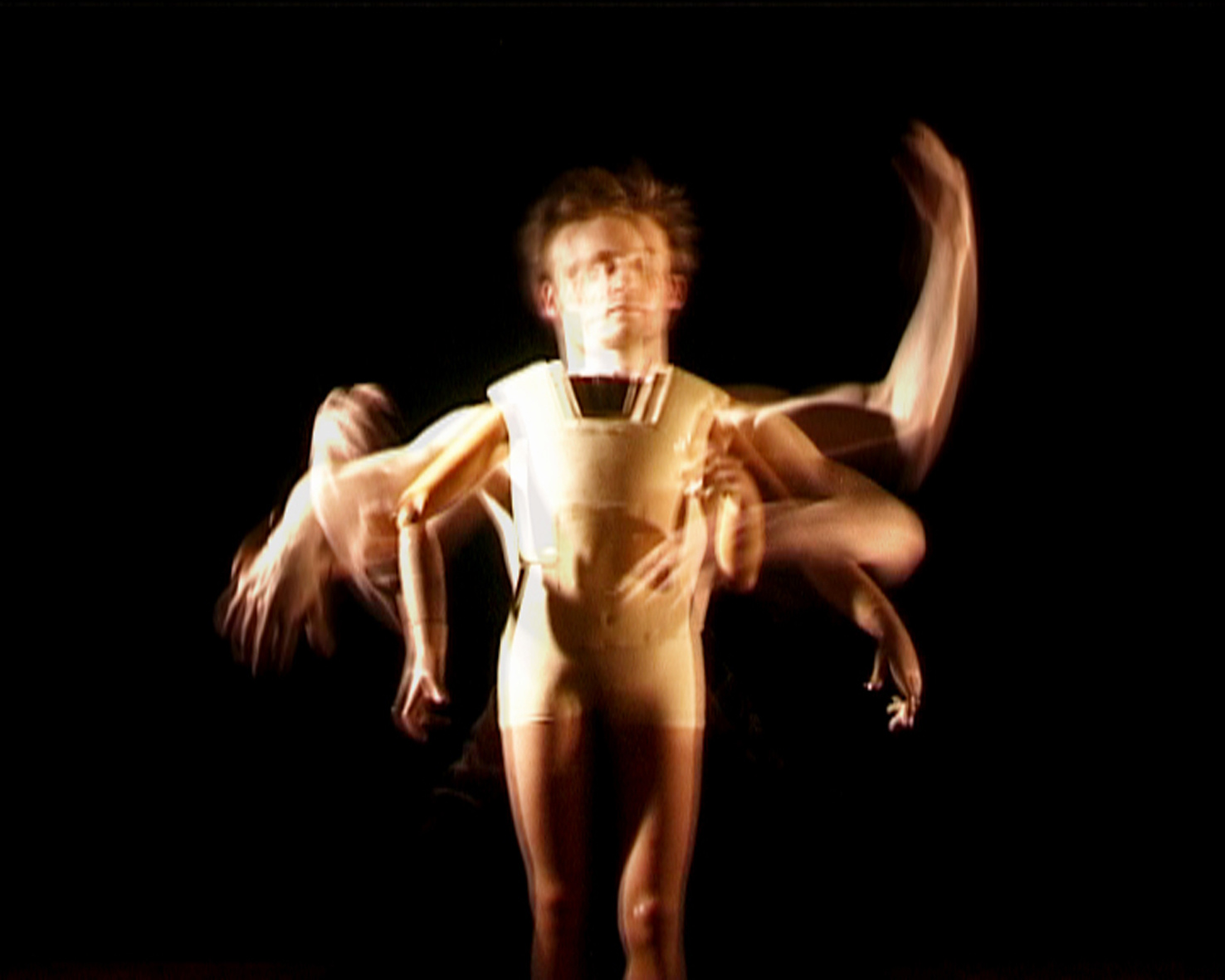 This video-film offers an illusory and complex metaphor, relating the human body to machine like patterns and shapes. There is no emotion, just motion and rhythm.