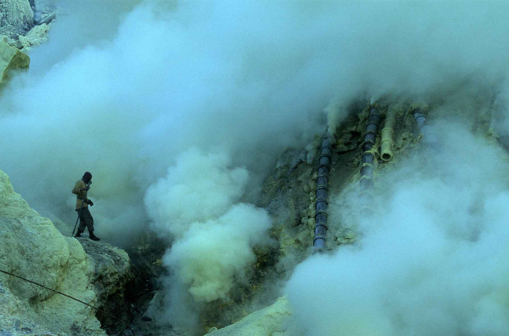 Kawah Ijen is an active volcano. It is also the site of labour intensive sulphur mining. There is no machinery, only a stream of hardy local labourers. This film from the National Film and Television School follows these miners on their gruelling journey, ultimately questioning the ritual of labour.