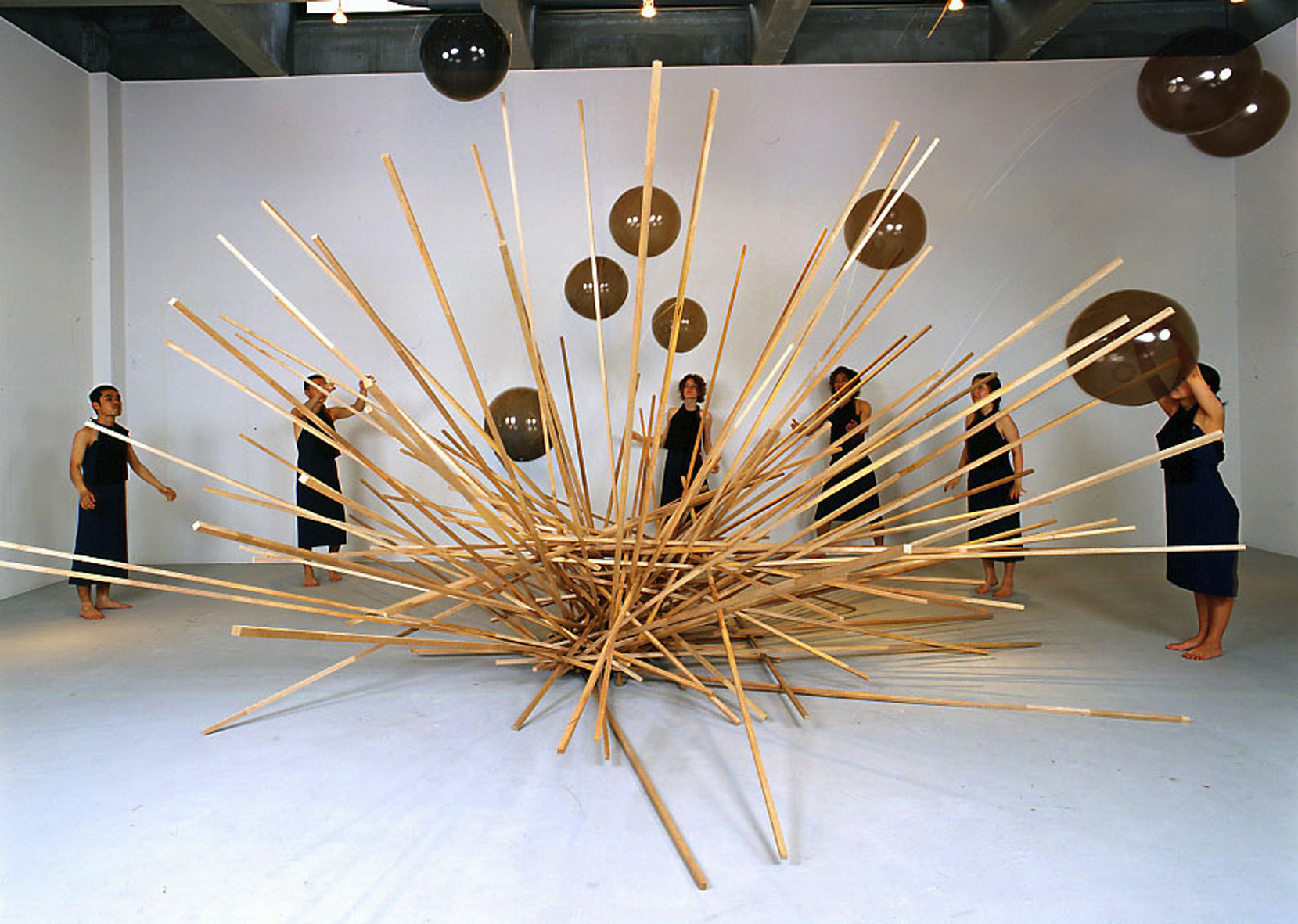 This is Veilhan’s first film as such. He took advantge of the situation (a relative innocence and lightness of the production) to return to the first applications of cinema for both science and entertainment (Marey, Lumière, Méliès). As in his sculptural pieces, Veilhan likes to make up his work of little scenes, punctuated by combat and dance.