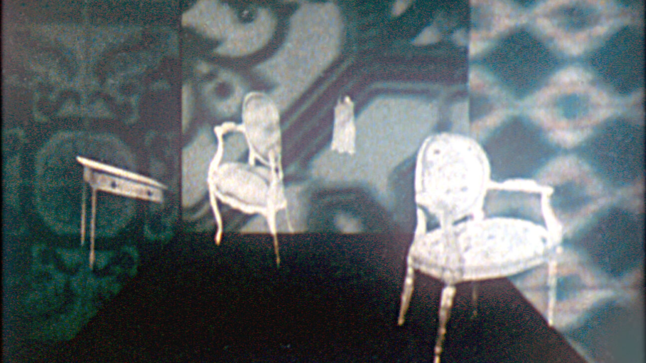 The supple camera feels its way along the walls of corridors and rooms, with the complicating double image accentuating the camera movement. -