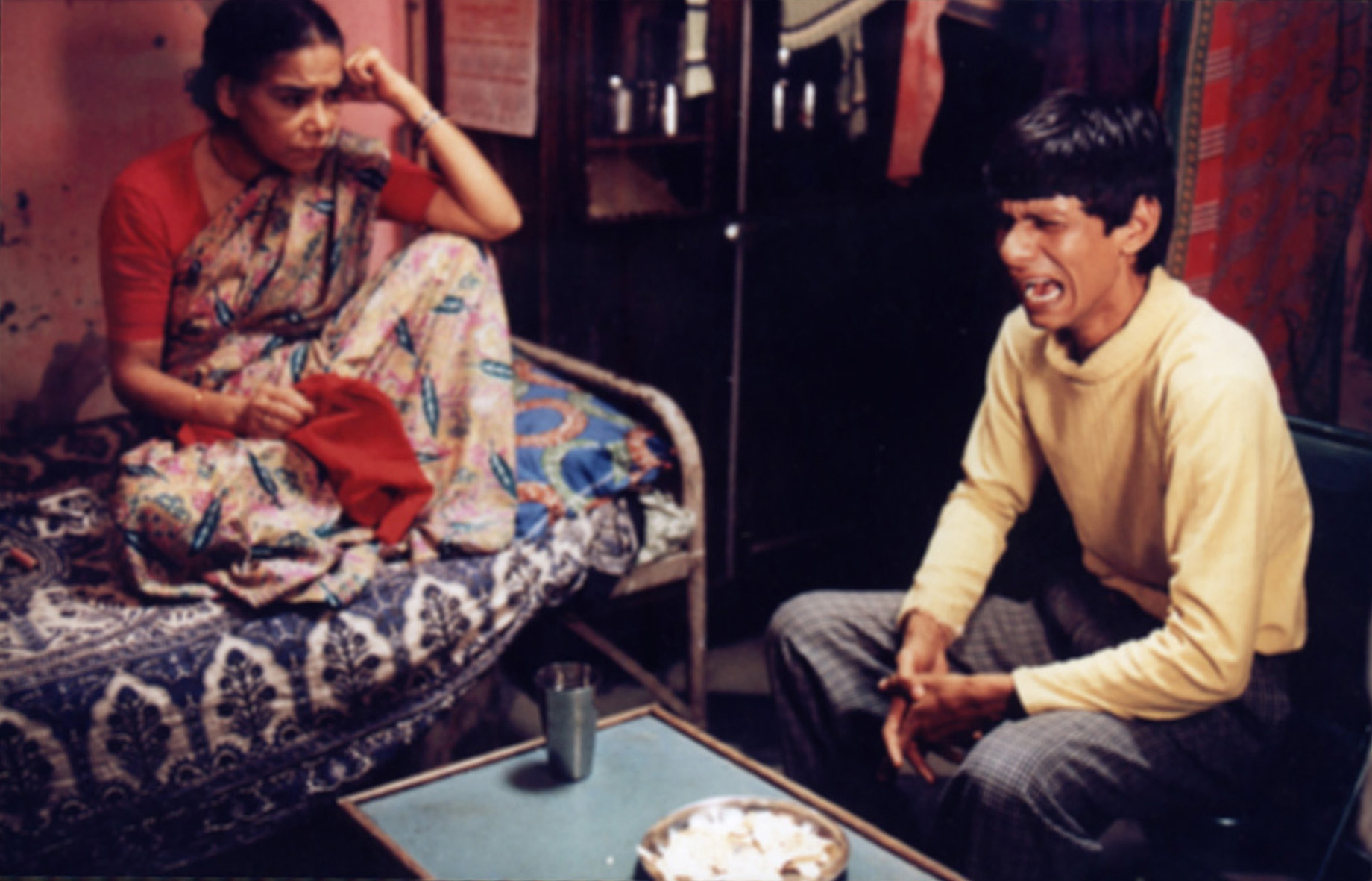 This lucid mixture of popular and independent Indian cinema is a funny yet serious satire on the devotion to moving images, film stars and television. Raghu is a poor young man who lives in a slum with his mother. He works as a waiter in a dancing bar cum nightclub where one of the girls, Sweety, fancies him. Nevertheless, his real passion lies not in real life but in virtual reality. He is addicted to the Indian soap opera Dard. He doesn’t miss a single episode and falls secretly in love with the soap’s heroine Neetaji, with whom he keeps having imaginary but satisfying conversations. Raghu’s ultimate desire is not to get rich but to meet his heroine in real life. Through a hitman from the bar, who has a crush on Sweety, he not only meets the TV heroine but also has to save her life. For the director, Rajat Kapoor, Raghu is a kind of Don Quichote in contemporary India. He suggests that it is not difficult to lose track of reality in a world that is bombarded with images. Raghu is a simple, innocent man who lacks cynicism and believes strongly in right and wrong, but sometimes chooses the wrong methods to help people. (RS)
