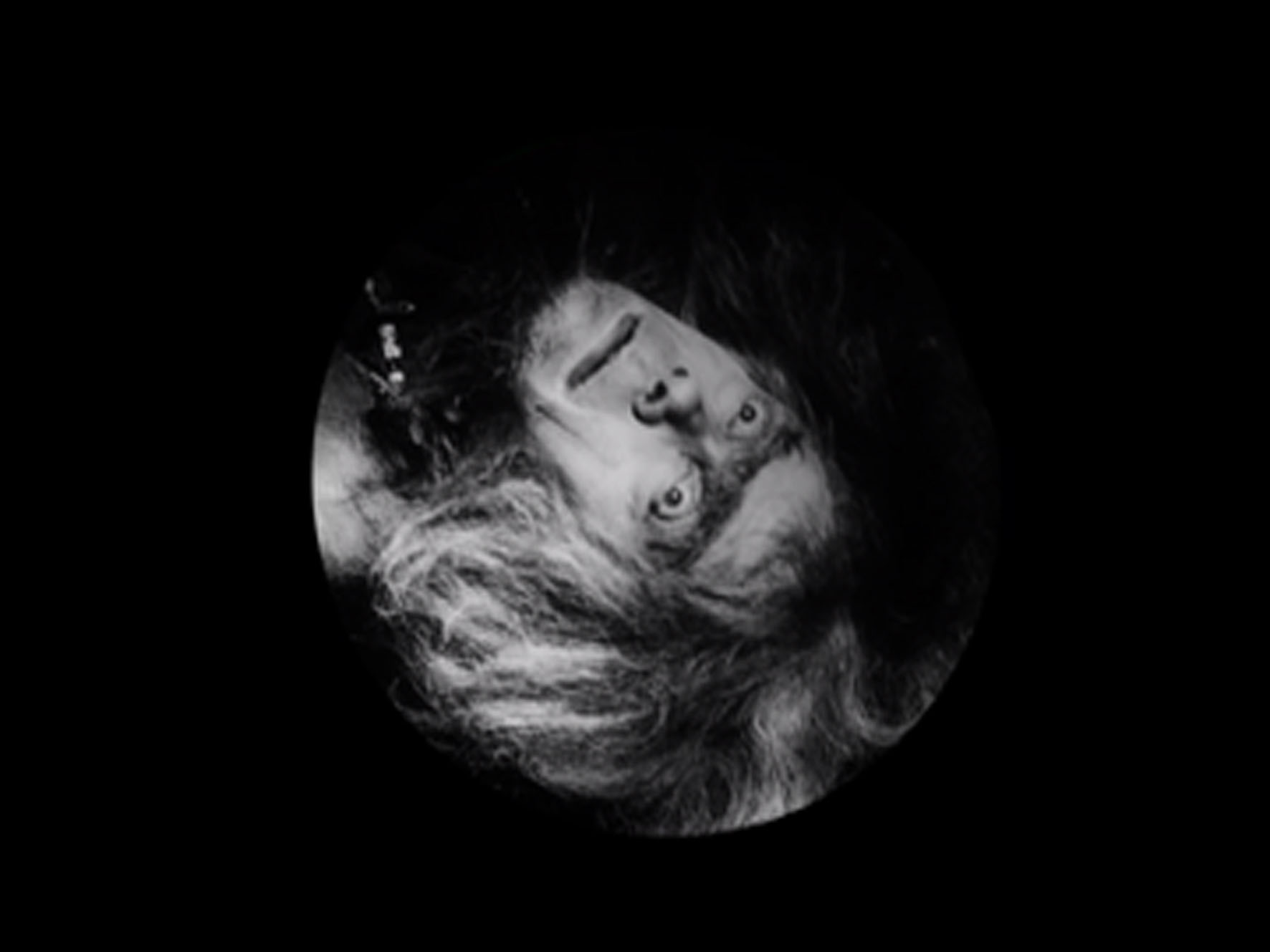 Dedicated Control Mechanism is an exploration of the role of spatial orientation in the construction of consciousness. It functions psychologically to engage the viewer with a striking human face as it rotates through 360 degrees. The viewer may be engaged by the stare of the face, the way light plays across it, or its unusual appearance. The viewer may even recognize it belongs to Mime, the smith from Fritz Lang’s Die Nibelungen, watching as Siegfried forges his sword. In any case, there should be a kind of pulling of attention in two different directions. The sound, slowed down and looping forward and backwards, adds a further element: the paradox of reversibility. V2N turns portraiture into intellectual history. It creates a parallel use of visual morphing over time and transformative spatial structuring of sound. The result of this combined experiment in form and content is a paradoxical experience: the viewer realizes something is happening, but can’t quite track it on an experiential level because it is happening so slowly, like a natural process. This glacially slow approach runs counter to current trends in media which seek to maximize speed, to overpower consciousness. My aim is to induce self-reflection. Contrary to what Mr. Virilio has told us, speed isn’t everything. (Keith Sanborn)