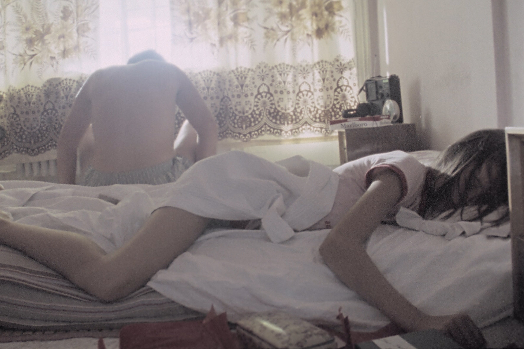 Dust presents tableaux of the unusual yet imperfect life that a couple has created for themselves. The viewer finds himself in a cloud of dust in which Osi and her lover are wrestling. In substance and style, a progressive film in which a relationship is surrendered to the gaze of the spectator.