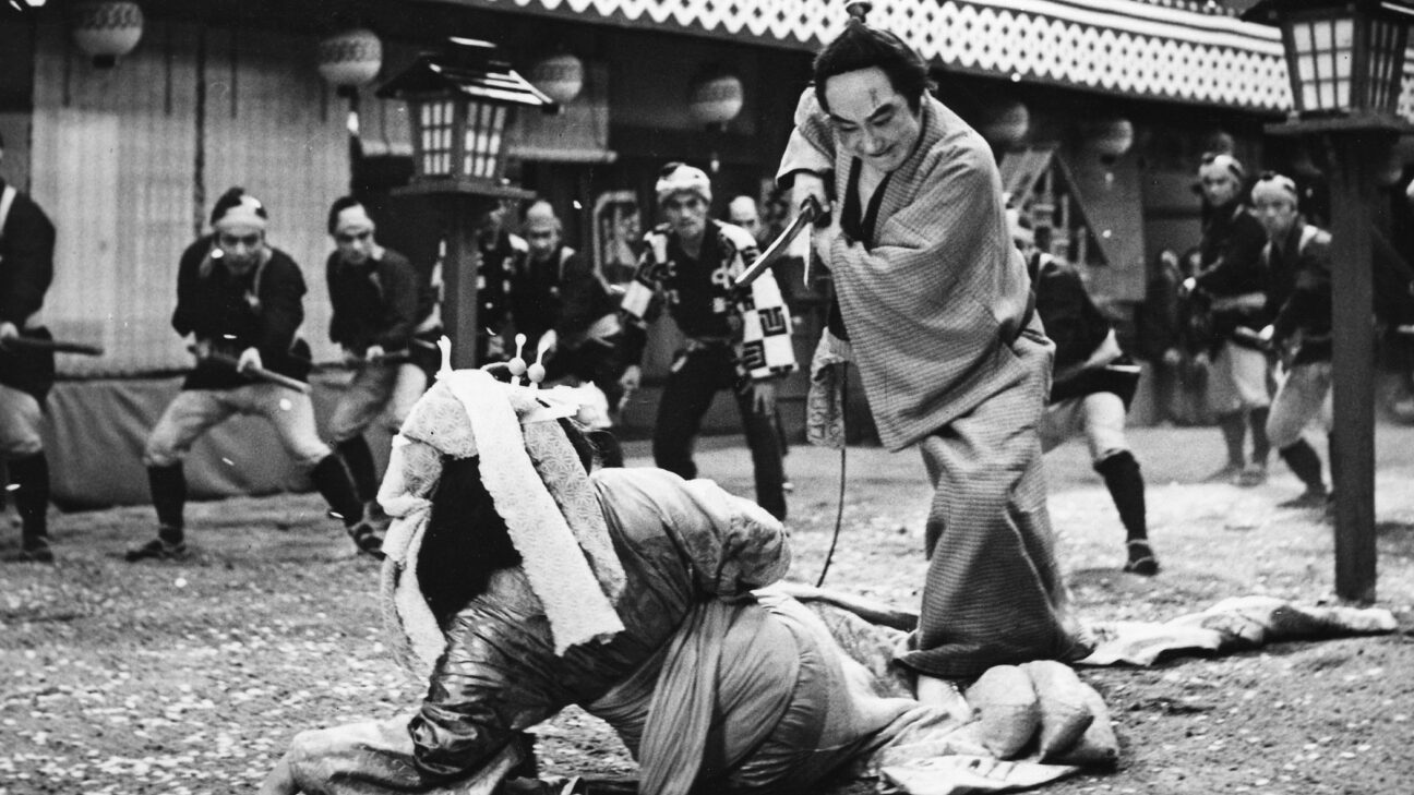 A glorious melodrama written by Mizoguchi collaborator Yoda Yoshikata, Yoshiwara: The Pleasure Quarter ranks with Uchida’s finest post-war films. A successful textile industrialist from the provinces is beloved by his employees for his kindness, but cannot find a wife because of a disfiguring birthmark on his face. Even the Yoshiwara courtesans refuse to entertain him, until an indentured peasant prostitute, Tamarazu, takes the unsavory assignment and treats him with brash tenderness. ‘The scar is not on your heart’, she scoffs, and the grateful businessman falls madly in love with her, ultimately losing his fortune in the expensive quest to purchase her freedom. When faced with her betrayal and his own financial ruin, the man takes revenge, turning the lavish ceremony to mark Tamarazu’s ascension to courtesan into a slashing spectacle. The script’s taut determinism, with its interlocked rise (hers) and fall (his), and teeming social detail; the dynamism of the scope cinematography; and the remarkably ambiguous characters of the besotted businessman and the grasping whore – in her earthiness and ambition she reminds one of Imamura’s enterprising insect women – make Yoshiwara seem like some kind of lost classic. (JQ)