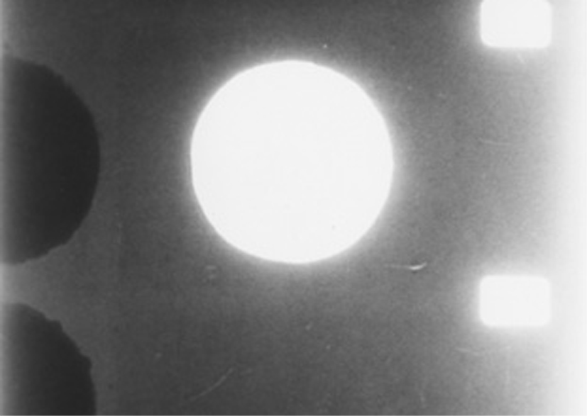 A two-projector film using images and sounds made directly by hand. The film is a re-working of the single-screen film Cycles #1, in which paper dots were stuck onto the surface of the film and optical soundtrack. When projected, the dots appear to fuse together as the gaps between them decrease; the separate image-moments become a single ball of light, and the separate sound-moments become a rising drone.