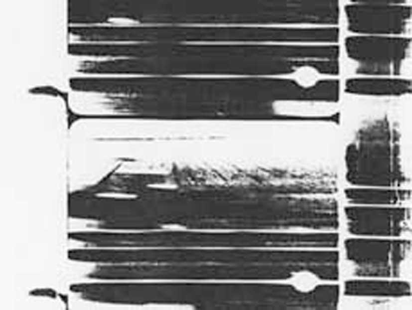 A 16mm performance with six projectors, in which letters that are printed straight onto the film are present in both sound and image. -