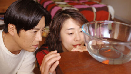 Hiroki Ryuichi is an experienced and talented director. A recent example of his ability to capture erring people with atmosphere is his film Vibrator. He made this equally entertaining, yet very different film with the same lead actress, the impressive Terajima Shinobu. A film that seems more cheerful, but in the end is possibly even more melancholy. Terajima plays Yuko, a woman aged 35. Unemployed. Unmarried. Being treated by a psychiatrist. She seems to live from one day to the next. She is not tied down, but has relationships with four different men. She seems cheerful and nonchalant. She is attractive and funny. Yet not far under the surface, dejection and restlessness battle for supremacy. The power of the film is that the life of a woman wrestling with her manic depression takes shape with the lightheartedness of a comedy. The four men in Yuko’s life each has a different and rather strange character. Yuko seems like a different woman, depending on which man is in her company. All four differ greatly from each other and each has his own problems. Basically they all want to be helped by Yuko. What they don’t see is that her problems could be bigger than their own. (GjZ)