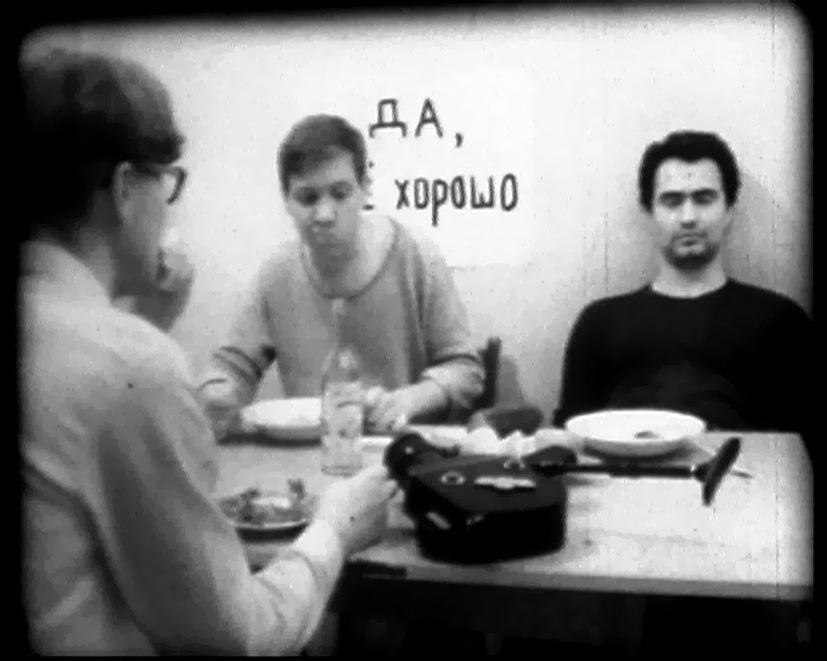Found footage and found sound. Badly solarized training films, documentary fragments, speeches of USSR party leaders and rock ‘n’ roll form a horrifying picture of media pressure.
