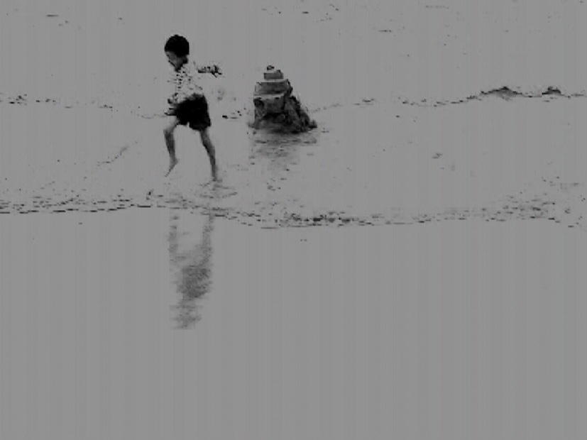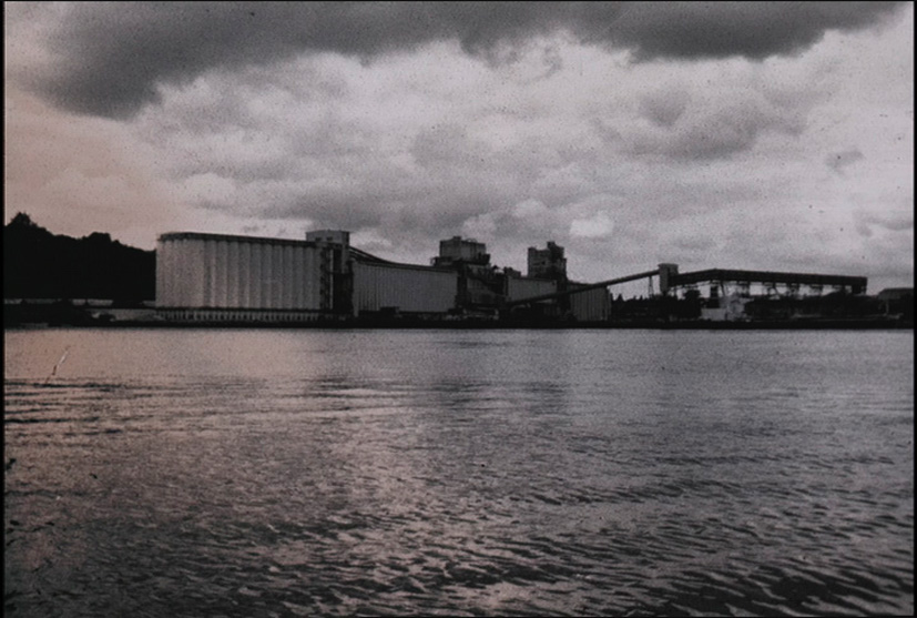 Prize-winning film with sanded, flickering images in sepia tones of decaying buildings on the quayside. -