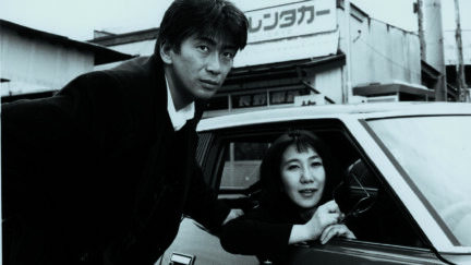 A superb crime drama (made for TV, but shot on film), which gives Muroi Shigeru one of her best-ever roles. Kono Takeshi has given up work as an electrician to run a gift-shop business with his partner/mistress Rieko, who’s a couple of years older than him. When the company faces bankruptcy Kono wants to quit, but Rieko strings him along with the promise of a large cash investment, the proceeds of a real-estate deal. Her actual plan to raise the money is to kidnap a young woman and demand a ransom for her release. The trouble is, it never occurs to her to keep the victim alive before trying to extort the cash. And when things start to go wrong, Rieko responds by murdering another girl and attempting another ransom scam… As usual in Nagasaki’s later work, the mystery/suspense angles fade into the background as emotional and psychological issues fill the frame. The Drive (the Japanese title means ‘The Last Drive’) is first and foremost a portrait of a desperate woman. It’s also one of Nagasaki’s most lacerating pictures of an unequal relationship. And it consolidates the through-the-windshield shot (going where and why?) as one of Nagasaki’s signatures. (TR)