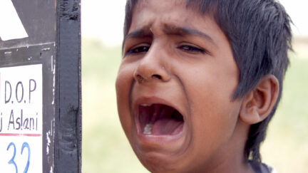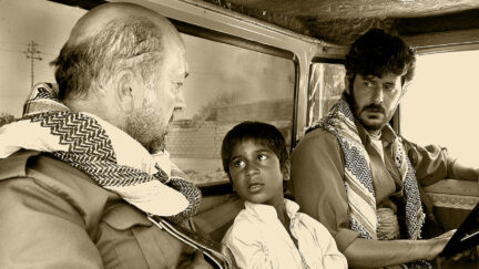 Shawkat Amin Korki (born in Iraqi Kurdistan) deals in his first feature-length film with the recent history of his country. The story takes place in Iraq during the American invasion in 2003 and the fall of Saddam Hussein’s regime. It is an unusual and unplanned road movie about two Kurdish soldiers, who truck in food supplies to their comrades-in-arms, and a five year-old boy they find lost on the street. One of the soldiers, Asad, takes pity on the boy and wants to help him find his family. The other one, Rashid, is a tougher cookie – certainly after he hears that the boy’s name is Saddam. He fiercely refuses to help the child. The two soldiers continue to quarrel about whether to help the boy or not while they carry on their way. They travel in the dust tracks, the boy between them. After their vehicle gets stolen they wander around the dried-out countryside that has been destroyed by war, and where the most common sight is soldiers and tanks. The film is a personal drama in time of war – for the soldiers, the boy and many others – and, especially with its documentary-like feel and use of non-professional actors, it bears reminiscences of Italian neo-realism. (LC)