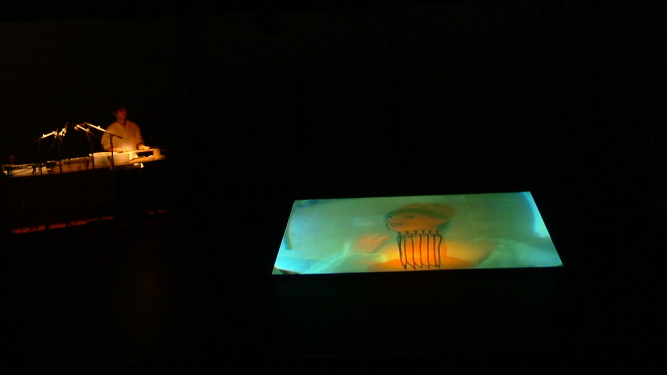 Narrative musical performance by the Korean visual artist and performer Sung Hwan Kim and American musician David Michael DiGregorio. Based on the per