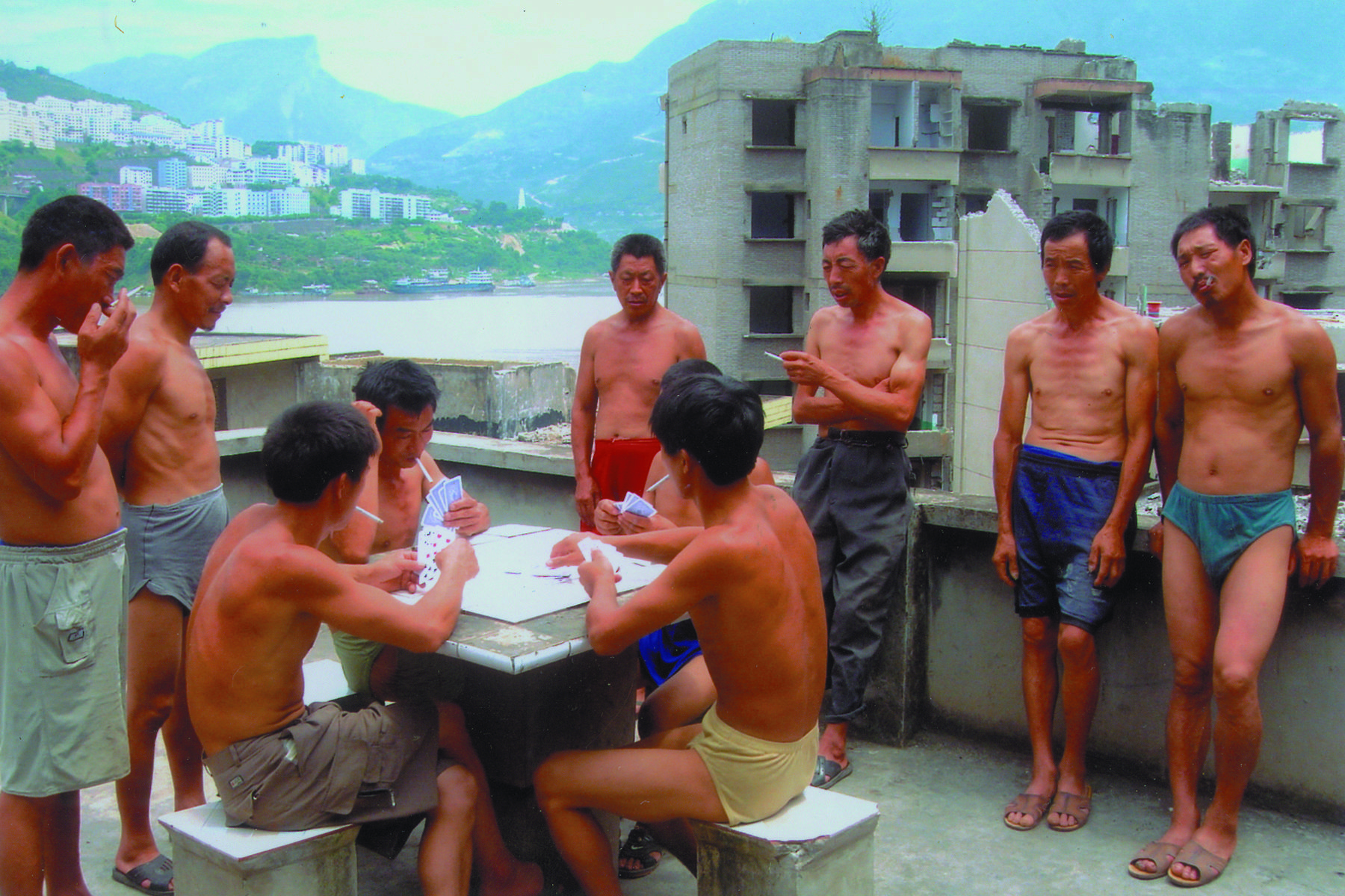At first sight, Dong is a documentary about the work and approach of painter Liu Xiaodong, who is one of the so-called ‘cynical realists’. Jia Zhang-ke travels with Liu, by now one of China’s best-known artists, to Sichuan where the rising Yangtze River is submerging whole regions. ‘Dong’ is not only Chinese for ‘East’ and hence refers to Asia, it is also Liu’s nickname. Since his leading role in Wang Xiao-shuai’s The Days (1993), Liu has been linked to the Chinese independent film. He was also briefly seen in Jia’s The World. In the region of the Three Gorges Dam, we see Liu paint one of his monumental works. In this case an enormous canvas of a group of almost naked workers on a platform, against the background of the river. They are the same men as the demolition workers in Still Life (see that film), including ‘actor’ Han San-ming. Several scenes from Still Life, which look like fiction there, also make an appearance here. In the second half of the film, Liu works on a portrait of young women in an interior in Bangkok. Together with the first part, this forms yin-yang twins that throw some light on the differences between China and Thailand. The affinity between director Jia and artist Liu is not only a shared interest in and vision of art and culture, but also in their fascination with modern social problems. As a result, Jia’s film starts looking like the painting of Liu. And documentary looks like fiction. (GT)