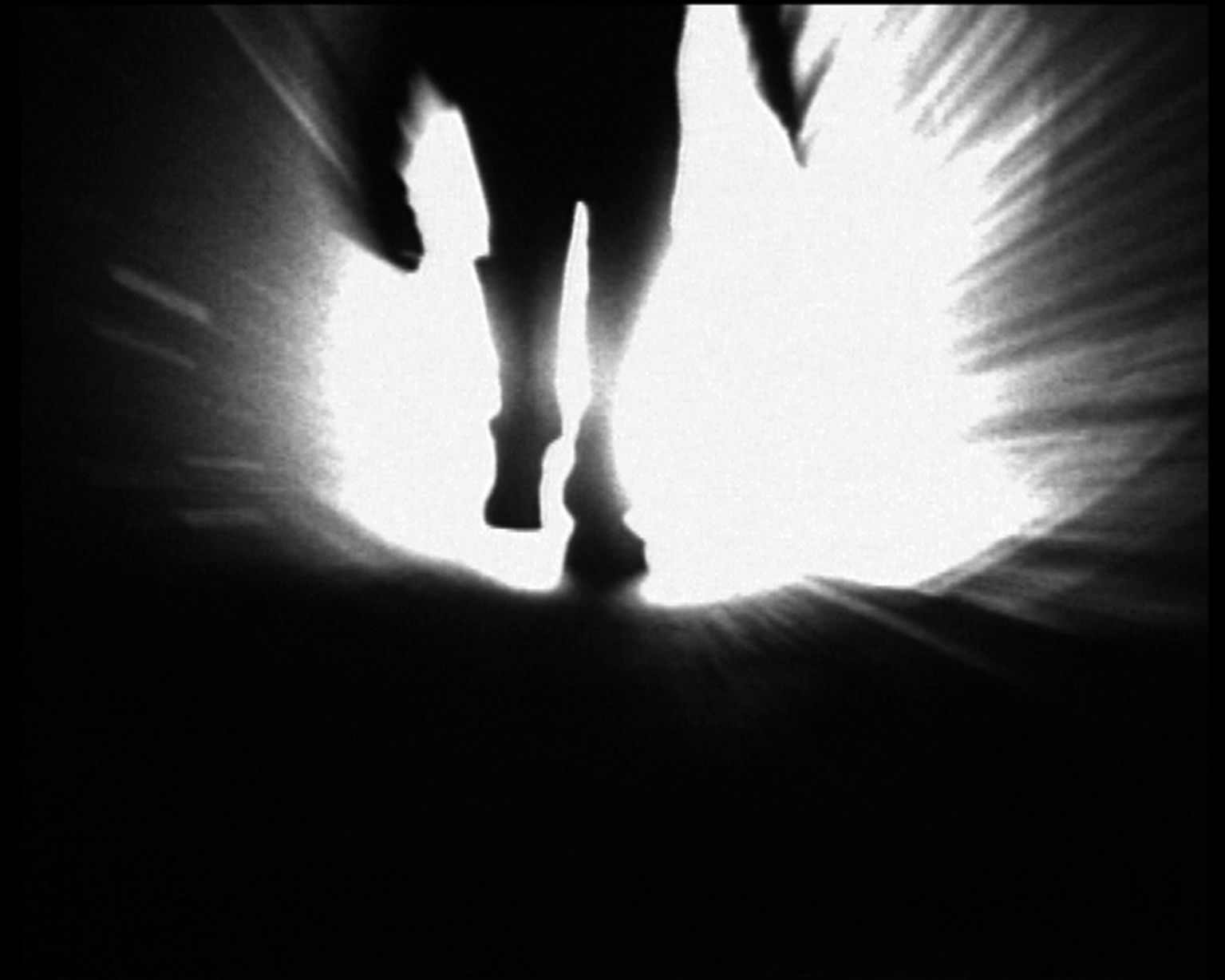 Beams of light cutting through space, edited from a large number of feature films, sporadically lighting the way to nowhere.