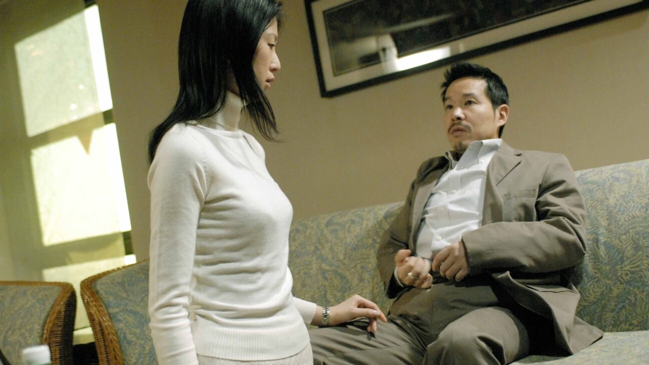 The protagonists in this film become entangled in their occasionally violent sexual fantasies, yet you cannot really include M among what are known as pink pictures with which Hiroki has become famous (or notorious). Pink master Hiroki is quite capable of making an ‘ordinary’ feature film, as was seen last year in Rotterdam with It’s Only Talk. So the pink colour of this psychological drama must be quite deliberate. Hiroki drew on his own experiences in porn to tell a serious and exciting psychological story about a woman with a horrific secret. The film has several protagonists each with their own moments and scenes, but it focuses on the housewife Satoko. She looks satisfied with her calm and comfortable life. Then one day she gets to know the young man Minoru through her little son. Minoru becomes obsessed by Satoko and discovers her secret double life: she is being abused and forced to be a sadomasochistic prostitute by a member of the Yakuza. Minoru decides to save her as he once tried to save his own mother, an action which had dramatic consequences. Satoko seems to put up with her fate, which makes her role even more intriguing. Confronted by the clumsy helplessness of her husband and the almost animal aggression of the Yakuza pimp, her restraint provides a beautiful contrast. It is the figure of Satoko who holds this consciously fragmentary film together with her enigmatic nature. (See also Bakushi by the same director.)(GjZ)