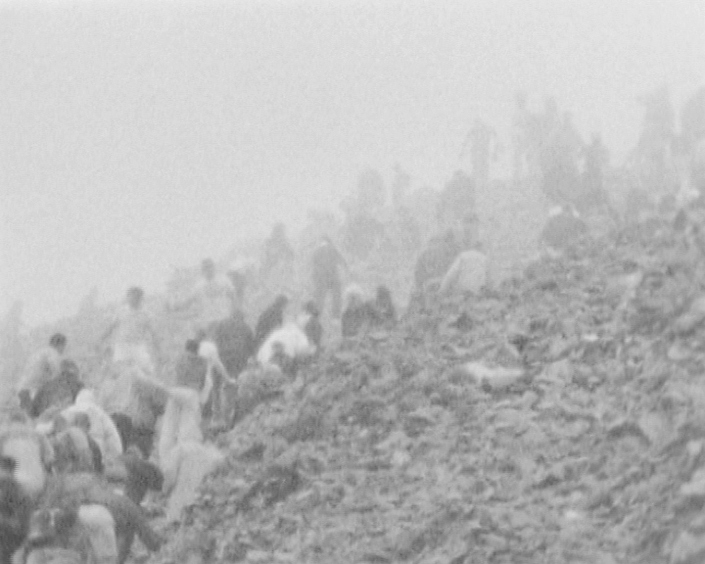 A hand-processed film in which a part of 20,000 people are seen climbing a mountain. Their purpose remains ambiguous and disquieting, heightened by the sound of rumbling created by so many feet on loose stone.