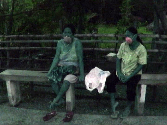 It rains as it can only rain in the tropics. The camera shelters in a small shop and looks at the door. After a lengthy hesitation, someone ventures outside, where a muddy surface awaits. A melancholy moment in distant Sagada in the north east of the Philippines; the land of the legendary Igorot tribes. The film maker speaks a poem with his film poem.