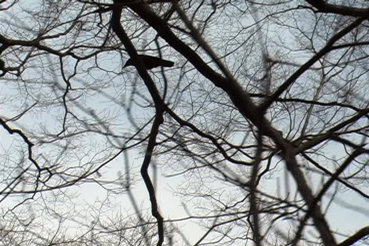 A video travelogue of a brief visit to Japan during the Korean-Japanese Friendship Year in 2005. Yoyogi Park houses large groups of black crows. Using audio fragments from the Nobel lecture from 1994 by the writer Kenzaburo Oe (‘Japan: the ambiguous and myself’) the Korean-born artist questions her vulnerable relationship to contemporary Japan. The sun breaks through and turns the confusion of branches into a hypnotic play of lines.