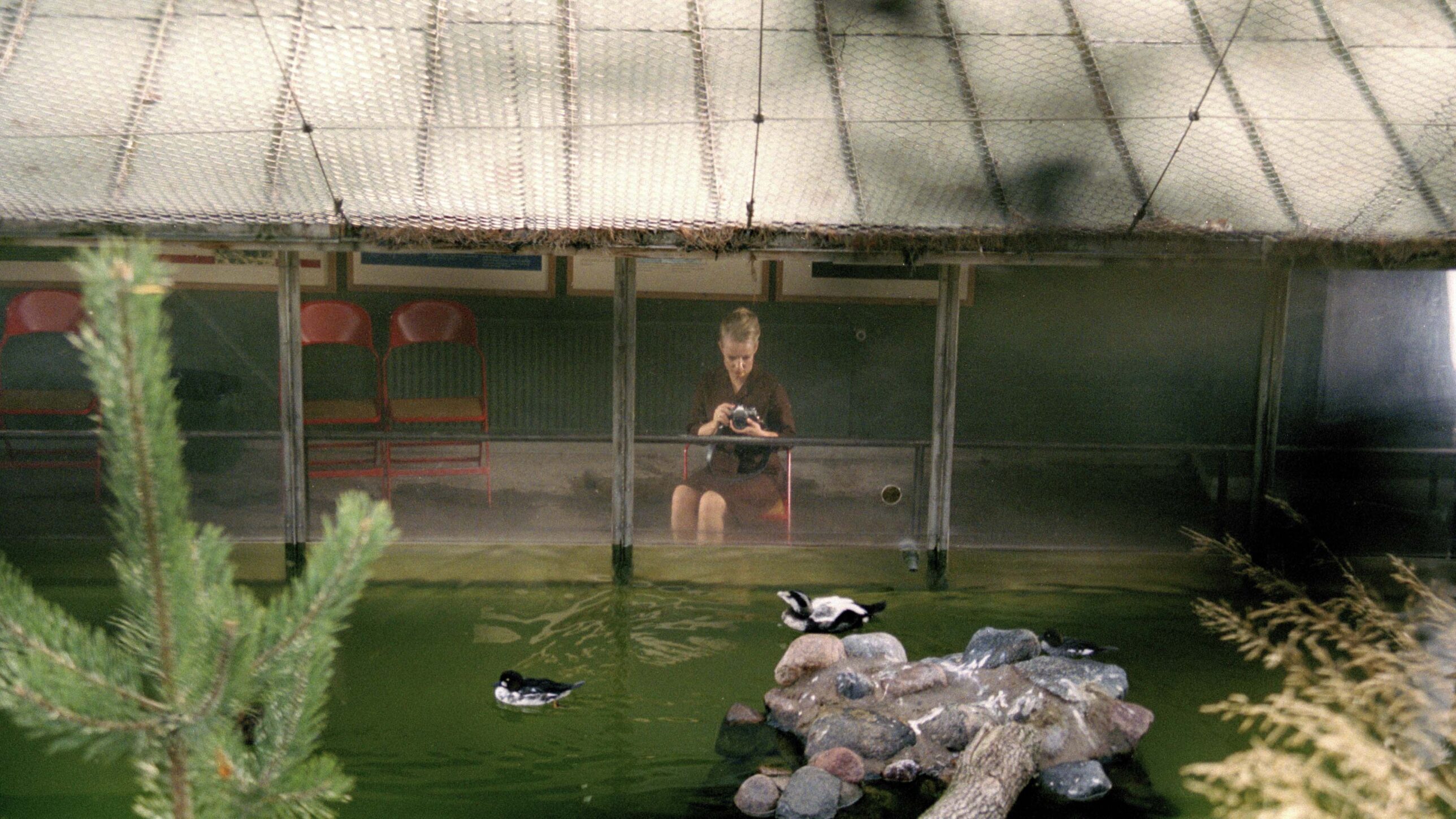 A woman is taking pictures of cages in a zoo. The ‘caged’ animals stare back at the woman and follow her with their eyes. The viewer and the object change places. The woman plunges into deep water, where a game of violent underwater rugby is on. She surfaces to breathe, but the stares of the animals and the camera’s view block her escape route. In desperation she makes an extreme decision. Intriguing fiction with many references to the history of cinema.