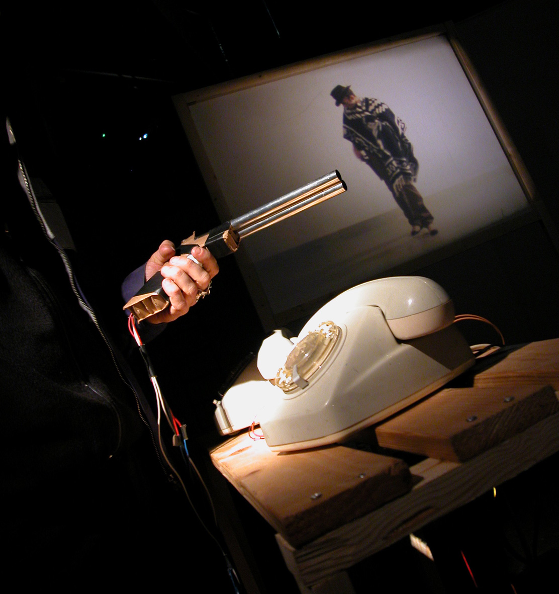 Super-8 Game Arcade consists of three old fashioned gaming machines in original size, reproducing interactive, digital game surfaces with the help of solely analogue and/or mechanical projectors. The inside of the machines consists of mechanically altered 8mm film and slide projectors. The game surfaces are created on 8mm film and projected as film loops. The interaction or navigation through the game happens mechanically or by buttons and switches, and the synchronization of players, image and sound happens by light sensors which are integrated in the surface of the game. Racer: The machine depicts a moving street environment through which the player must safely drive with a car. Pixelblaster: Hero of the game is a little robot who has to escape bullets that are falling down. By choosing a game, the player can define the way the bullets are falling down the light-screen. High Noon: Mobilephone Cinematica. The project High Noon combines the home cinema format Super with new technologies suitable for film. Mobileskino plays the decisive shooting scene of the classic film High Noon, combined with mobile phone antennas.