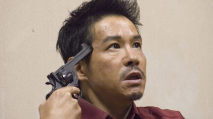 A film with an unusual form and substance and that has a lot to do with the background of the maker. When Adachi Masao made this film, he hadn’t made a film for 30 years. The style and message of the film seem to come straight from a different era. The era in which films could be outspokenly avant-garde and extremely political. Adachi was once a scriptwriter for Pink Pictures (narrative porn) and for film makers like Wakamatsu and Oshima. He radicalised in the 1970s and joined the Japanese Red Army, an armed political organisation. Now we would call it a terrorist group. With part of that little red army, Adachi left for the Lebanon to fight alongside the Palestinians. More than 20 years later he was arrested there for passport fraud and disappeared for years into Lebanese and Japanese prisons. Now Adachi has made a film about an imprisoned terrorist and you could say he knows what he’s talking about. The protagonist is probably based on Kozo Okamoto, a member of the Red Army who is still underground in the Lebanon. But also on Adachi’s own experiences: the repressive prison system, the torture and feverish visions. And that gives this film its stunning intensity. Of course Adachi is lacking competitive rhythm as a film maker, but he still has a furious shot. He follows his tortured imprisoned terrorist a long way into insanity. (GjZ)