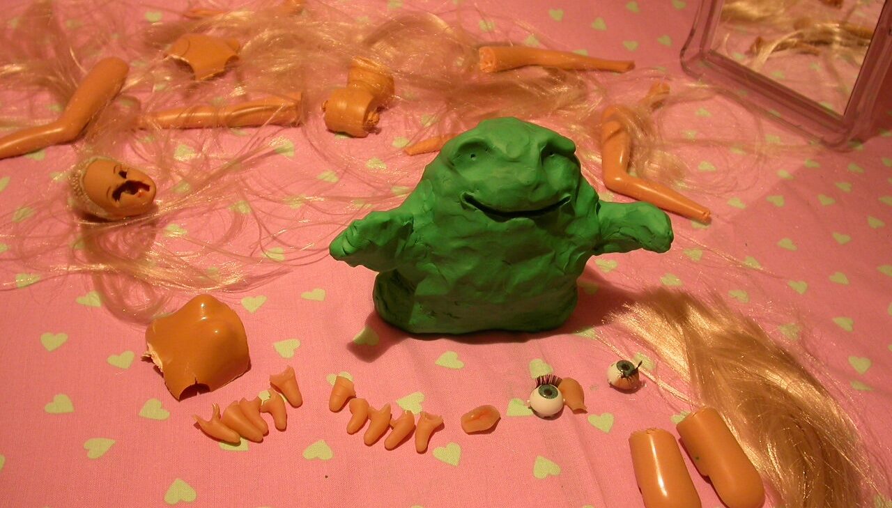 Humorous clay animation about a green creature that merrily cuts up a Barbie doll to change itself into a femme fatale. With an unexpected result! -