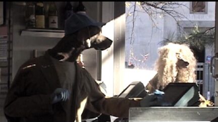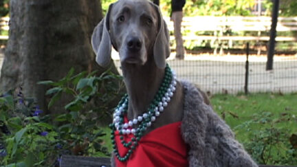 Day in the park with the dogs by the famous photographer/film maker William Wegman. His Weimaraners often posed for him, but now they go even further. Commissioned by Madison Square Park Conservancy in New York.