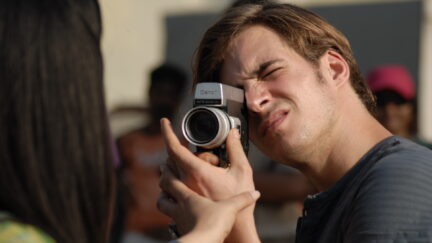 ‘I want you to be proud of me,’ the young Dutch actor says to his 8mm camera. During his stay in a hotel in Mumbai, he keeps a video diary for his father is going senile in Holland. In India, he’s been given a role as a colonial in a nostalgic Bollywood musical. The taxi driver doesn’t have to explain to him that the most productive film industry of the world is to be found in Mumbai, formerly known as Bombay. Encouraged by a girl who approaches him in the street, wide-eyed, begging for a better future, the guilt-plagued Nick undergoes a metamorphosis that bears a slight resemblance to that of Travis Bickle, the protagonist in Taxi Driver. Finally, he cuts his hair short and offers himself as a Christ figure in Hindu-land in order to right a few social wrongs such as arranged marriages, a shortage of medical care and child labour. In doing so, Nick reveals himself to be both a naive and arrogant Westerner who has little understanding of the culture he’s trying to elevate. Despite all his good intentions, he is greeted only by incredulity.