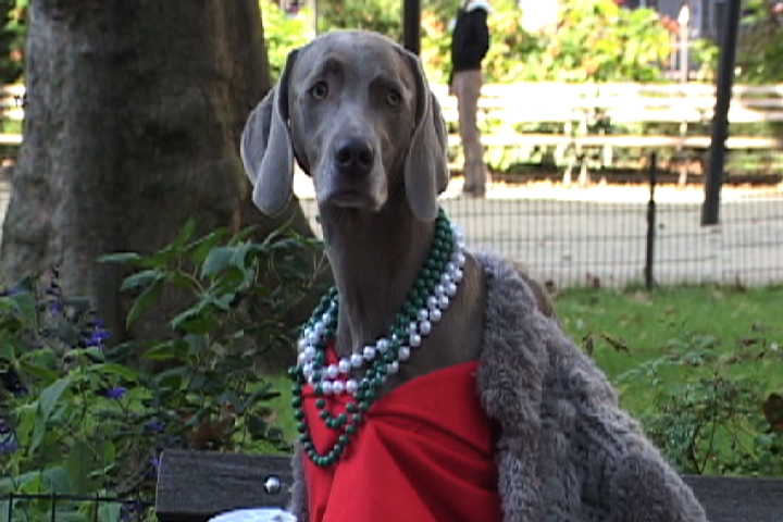 The dogs of the famous photographer/film maker William Wegman are out for a day in the park. -