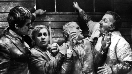 Hands Up! has two planes of action. The contemporary part is set at a reunion party of medical-school alumni and on board a freight train, where five of them reminisce on their past and the lives of their parents, who fought in the war. The second plane is set in the 1950s, when all of them were students and took upon themselves the task of assembling a huge portrait of Stalin. The portrait turned out to be faulty, having two pairs of eyes. Consequently, they had to explain their mistake to a commission, comprised of activists in the youth organisation, which accused them of sabotage. The main victim of the mistake was, of course, Andrzej Leszczyc. As with the three earlier parts of the four-part Leszczyc series, the director takes issue here with the relationship between Poland’s present, which is represented as consumerist and morally thwarted, and its past, on this occasion the war and the Stalinist past. The film tackled the ever-contentious topic of Polish Stalinism, so Skolimowski was asked to self-censor his film, cutting out the episode with the four-eyed Stalin. His refusal meant that the film ended up on the plank and precipitated the director’s emigration. Of all the films Skolimowski made, Hands Up! seems most expressionistic. The camera is static and the interior of the train looks like a stage, where characters play out their psychodrama. (EMK)