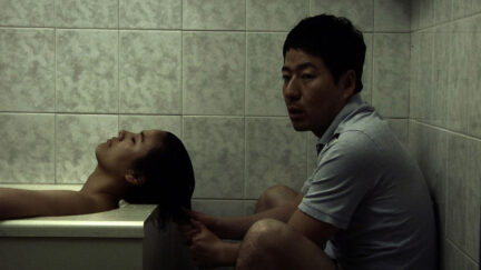 An omnibus film in three parts. The American independent film maker Jon Jost is at present teaching in Seoul, South Korea. Two of his students, Moon Si-Hyun and Lee Sang-Woo, both made one part and the master himself was responsible for the last part. Lee Sang-Woo, who last year saw his début film Tropical Manila have its world première in Rotterdam, made the first part, Karma. Lee Sang-Woo himself played the leading role: a lonely man who falls in love with a shop dummy that’s been thrown away. He drags his lover everywhere, until she gets stolen. The second part is by Moon Si-Hyun and is called The Silence. Here, too, Lee Sang-Woo plays an important role: the loving and caring husband of a woman who does nothing and says nothing. She only appears lively in flashbacks. The two parts are beautifully photographed and classically told, and are closely linked. Mentor Jon Jost took a different approach in his part, entitled Mr Right. In stark contrast, he chose a hyper-realistic approach, but here, too, there’s a role for Lee Sang-Woo, who keeps everything together. The three parts have more coherence thematically than stylistically; all are about difficult love relations and the struggle to leave a lover. The Korean parts are consciously strange and perverted, and Jost allows his sober observation to clash with that in a fascinating way. (GjZ)