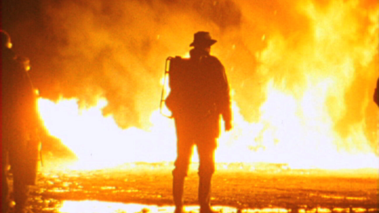 This is America! Stratman meanders in O’er the Land (a phrase from the national anthem) around various exponents of the national identity. Interwoven in the film is the incredible story of a jet pilot who left his plane in an ejector seat at stratospheric heights and took 45 minutes with minor detours to reach the earth. He survived and experienced the ultimate dream of all Americans.