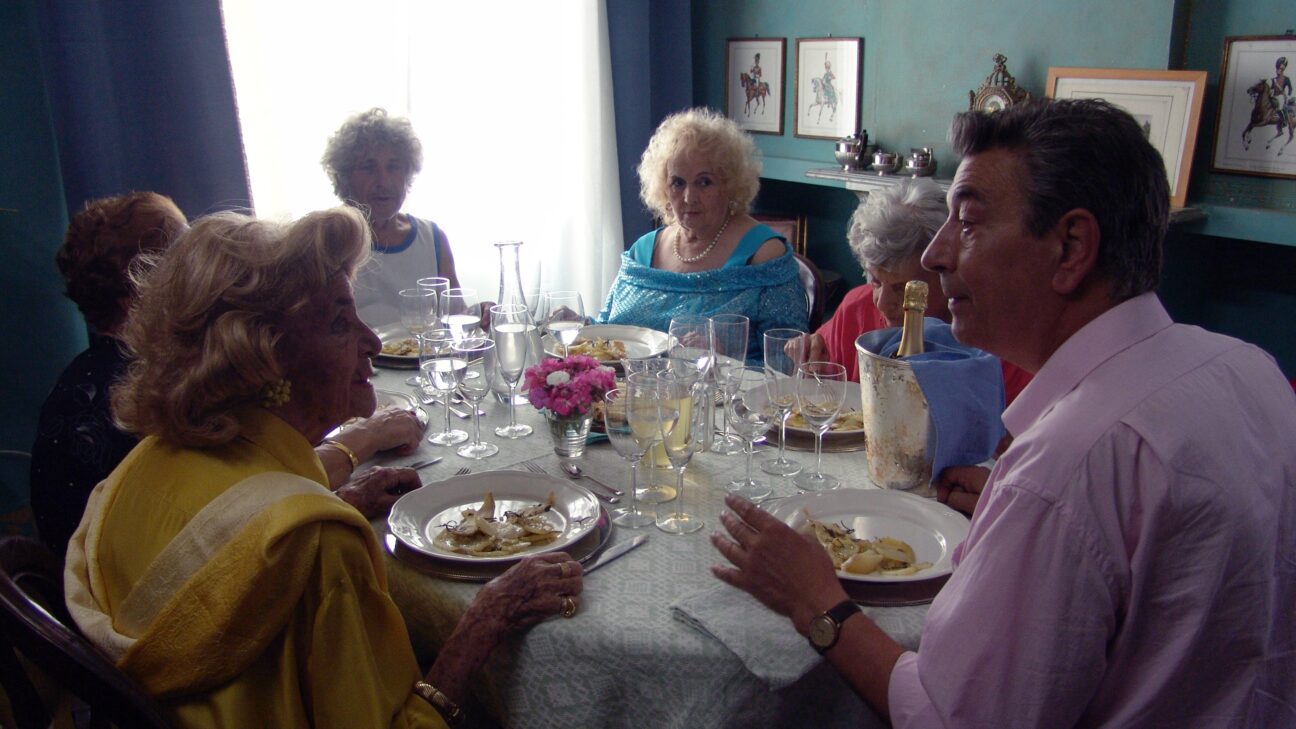 Giovanni is fifty and the only child of his mother, a widow with whom he lives in an apartment in Rome. It’s mid-August and hot in the city. His mother has a fairly demanding nature and so Giovanni spends as much time in the local bar as in his apartment, where he does a lot of the household chores. Ferragosto, the traditional free weekend in Italy (Assumption) is coming up and Giovanni receives a visit from his landlord: Can he look after the landlord’s mother for two days? In view of Giovanni’s rent arrears, it’s a request he cannot refuse. A little later he receives a visit from his family doctor with virtually the same question. It’s then up to Giovanni to organise a good lunch on a holiday… Gianni di Gregorio, partly responsible for the screenplay of Gomorra (see elsewhere in the programme), wrote and directed with verve this appealing, heart warming feature début, Mid-August Lunch, in which he also plays the leading role of Giovanni. The construction of the story, the interaction of the old ladies, the refinements of language use and eating habits, yet also all kinds of other small details together yield a minor masterpiece that was a kind of surprise hit at the recent Venice film Festival. The peculiarities and charms of the old ladies are especially beautifully portrayed. (EH)