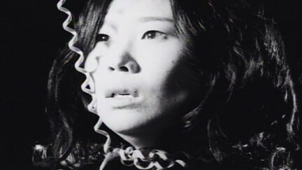 An almost unbearably black mood characterises the work of the twins Kim Sun and Kim Gok. Suicidal Variations shows a woman in a state of total despair after she kills a man. His decapitated head follows her and she is decides to escape by committing suicide. Death is manifested in violent flickering effects.