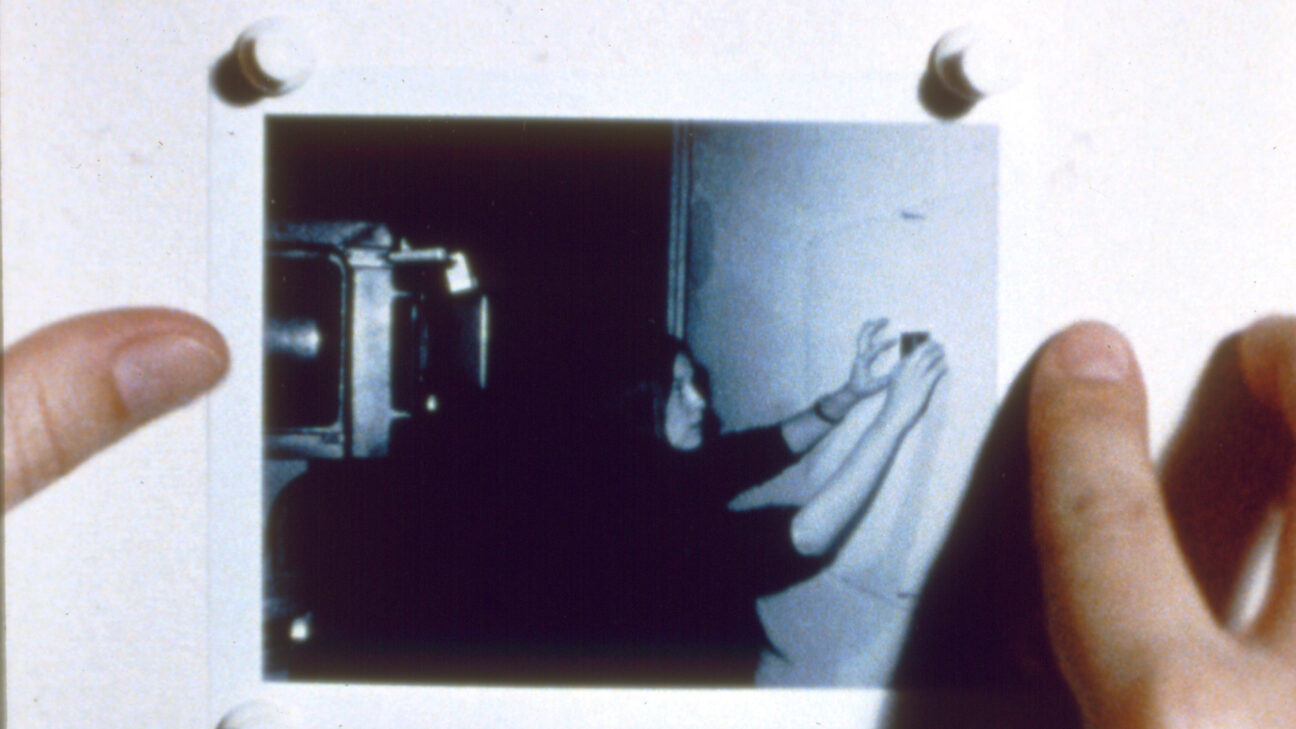 A film in two parts. In the first, we see a barren room with a young man sitting behind a tape recorder. Another man, played by Fisher himself, busily enters; he tests the recording machine and eventually goes into a back room, which, when illuminated, turns out to be a projection booth. The film he projects will be the whole second part of this work. Throughout we hear the comments of the two men as they watch the rushes of their film.