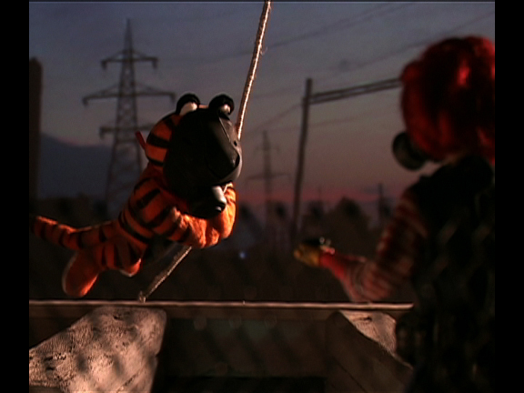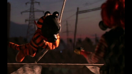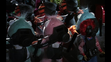 Crazy puppet animation in which mascots from commercials attack handsome anarchists. With shooting teddy-bears!