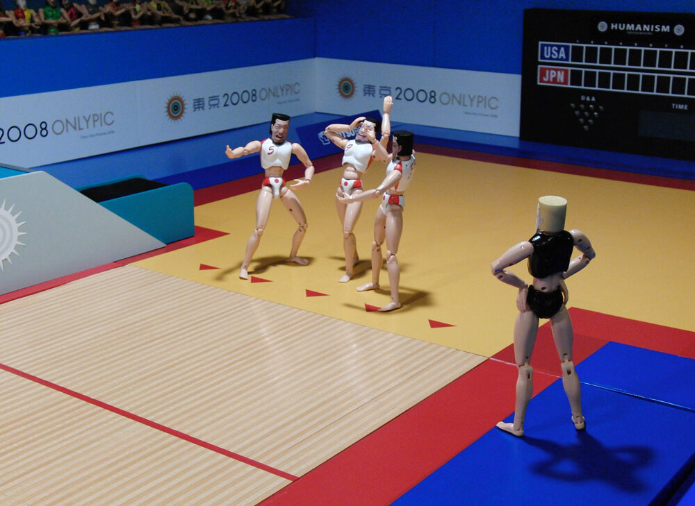 Imaginative and stunning parody on the media insanity surrounding the Olympic Games. This project used all the variations and techniques which animation art has on offer. For all this variation, Mashima asked a dozen other animators, among them three from outside Japan, to make contributions. The structure of the film is that of a news show and the news flashes and reports have been made by various artists: Takanobu Mizuno, Bill Plympton, Keiko Sootome, Toru Hosokawa, Takashi Taniguchi, Richard Fenwick, Tetsuro Kodama, AC-bu, Ignacio Ferreras, Yutaro Sawada and Hiroyuki Nakao. The makers do not restrict themselves to existing sports or existing beings – sometimes it looks as if they come from another planet. Mashima is also the maker of Ski Jumping Pairs: Road to Torino 2006, a worldwide hit (500,000 DVDs sold), and his latest film is already being eagerly announced on Amazon.com. Should Mashima make another Olympic sport satire after Ski Jumping Pairs and this film, then he will certainly go down in history as the founder of a unique genre: the hilarious sport-report caricature. The incomplete film was already shown during a guerrilla screening in Sapporo, Japan, and the Holland Animation Film Festival also screened a special edition, but here the film is at last being shown for the first time in its final form. Welcome to the OnlyPic Games. (GjZ)